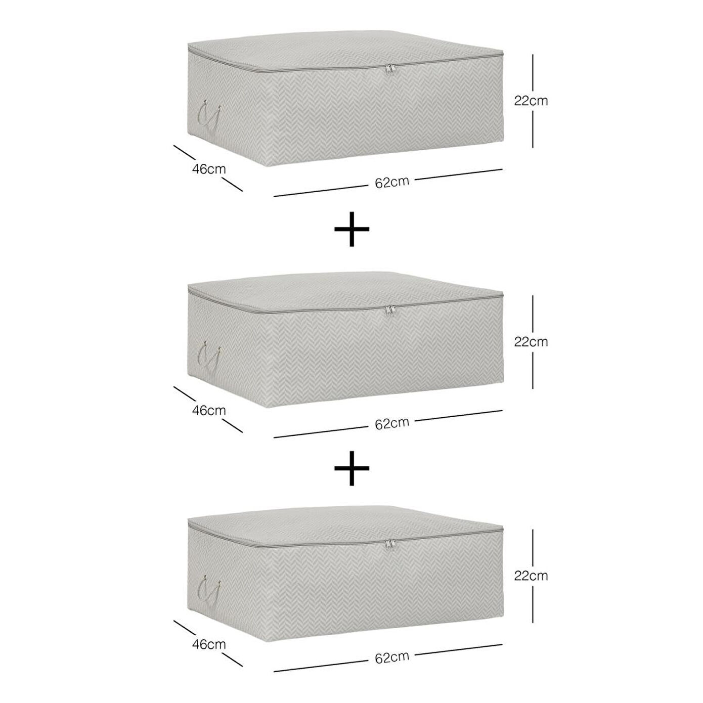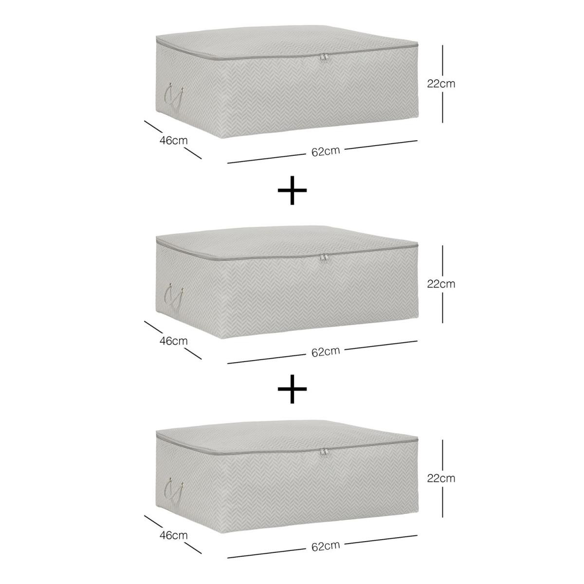 Ocean Home Textile 3'lü Büyük Boy Gri Balıksırtı Baza Altı Hurç Set 62 X 46 X 22 Cm