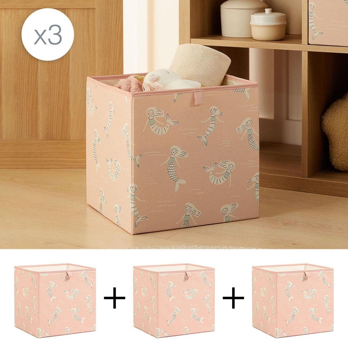 Ocean Home Textile 3'lü Çocuk Odası Deniz Kızı Kutu Set 33 X 30 X 33 Cm