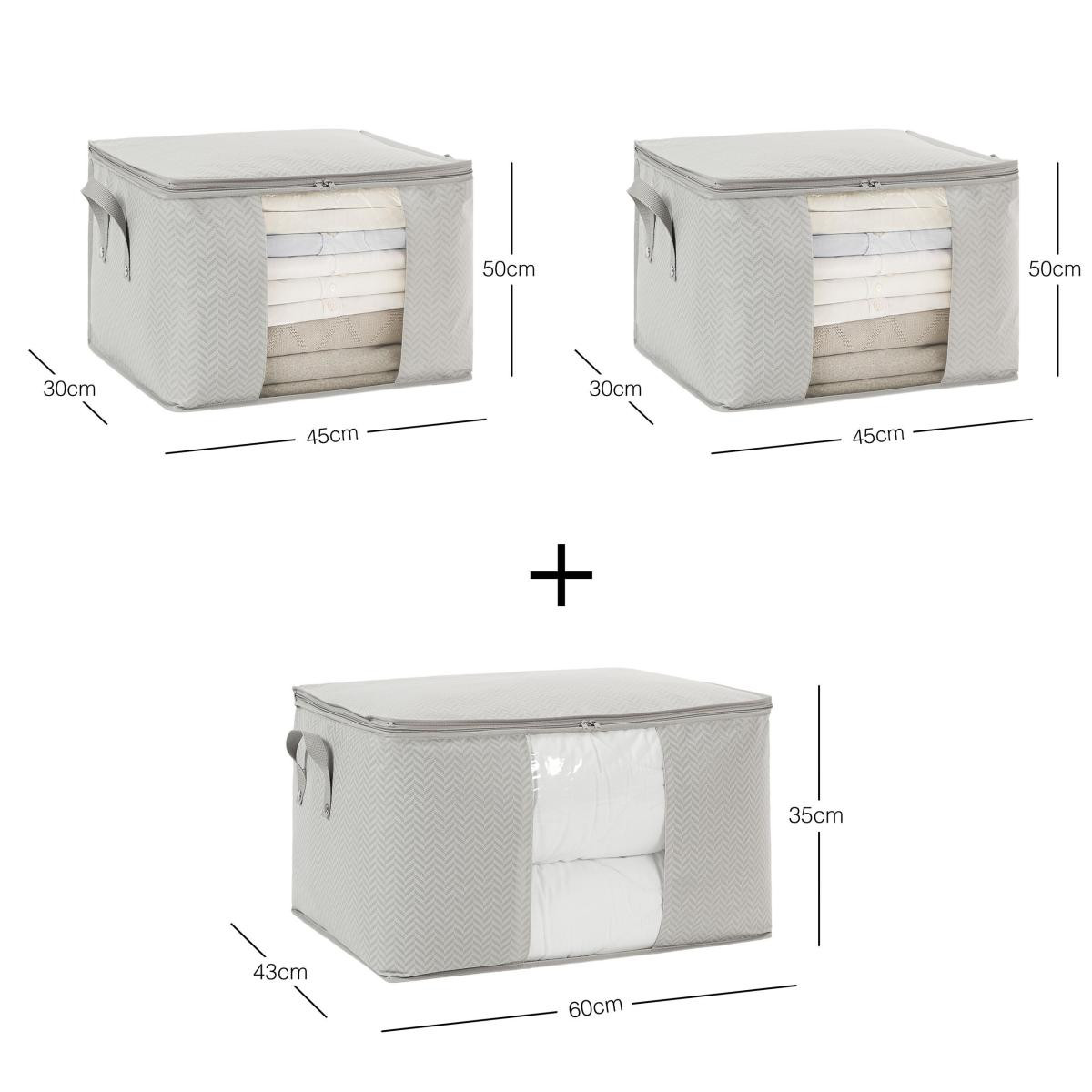 Ocean Home Textile 3'lü Pvc Pencereli Gri Balıksırtı Hurç Set 1 Adet 60 X 43 X 35 / 2 Adet 45 X 40 X 30 Cm