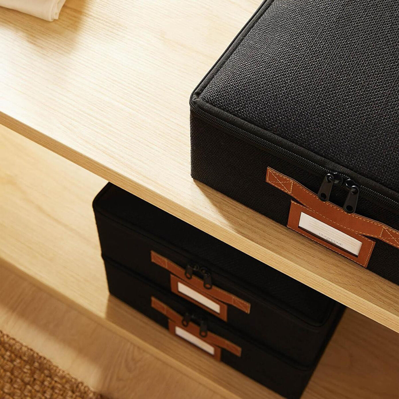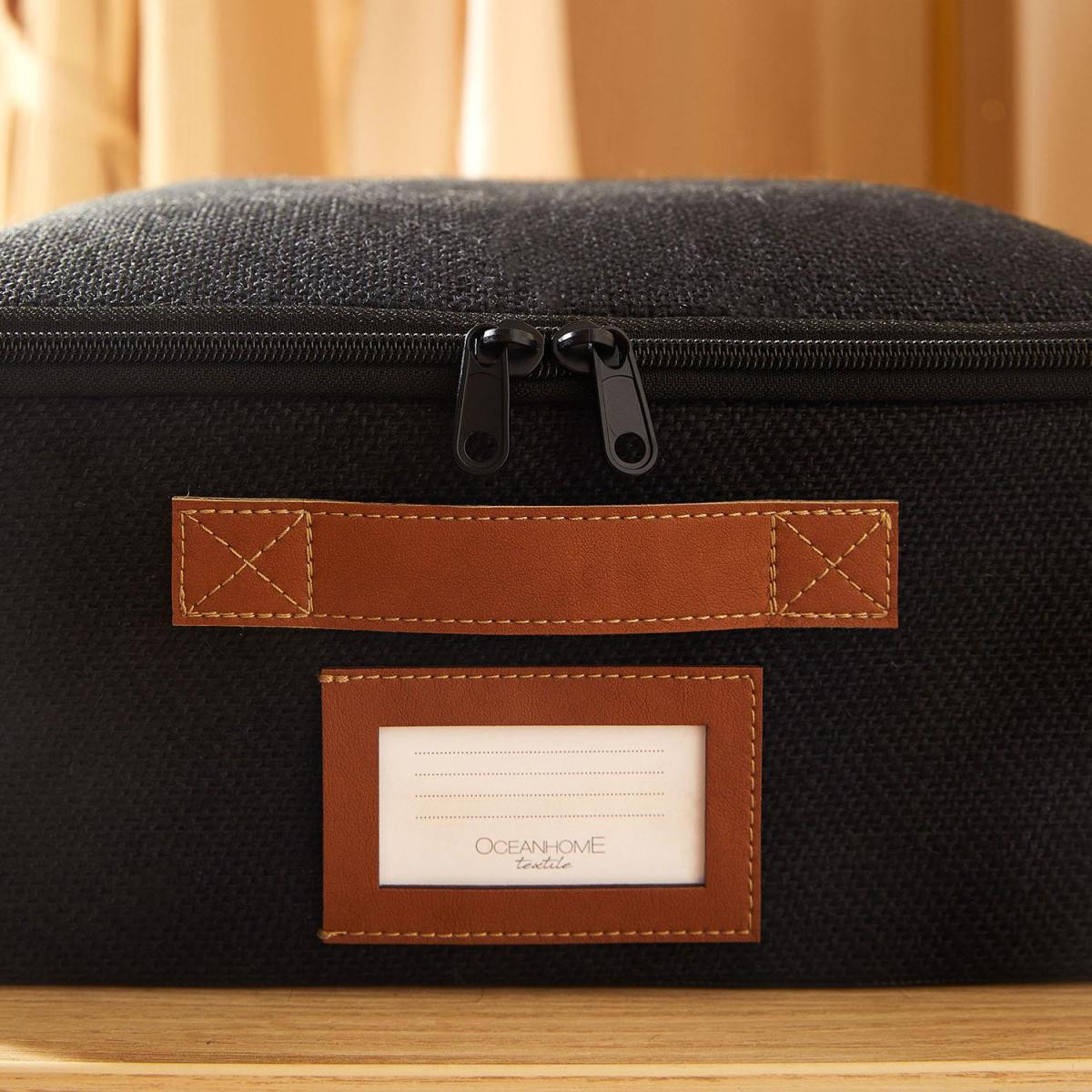 Jüt destekli kutu hurcun ön yüzeyinde bulunan deri görünümlü etiket koyma bölmesi sayesinde içerisine yerleştirilen eşyaları kolayca tanımlayabilirsiniz.
