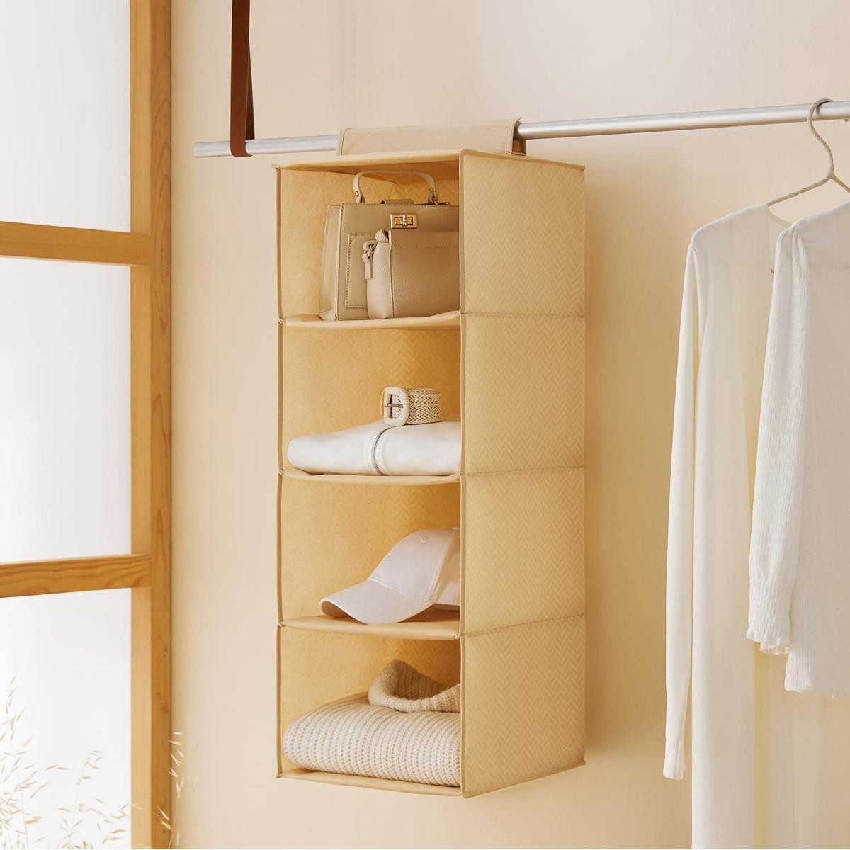 Ocean Home Textile 4 Katlı Bej Balıksırtı Dolap İçi Düzenleyici 30 X 30 X 80 Cm