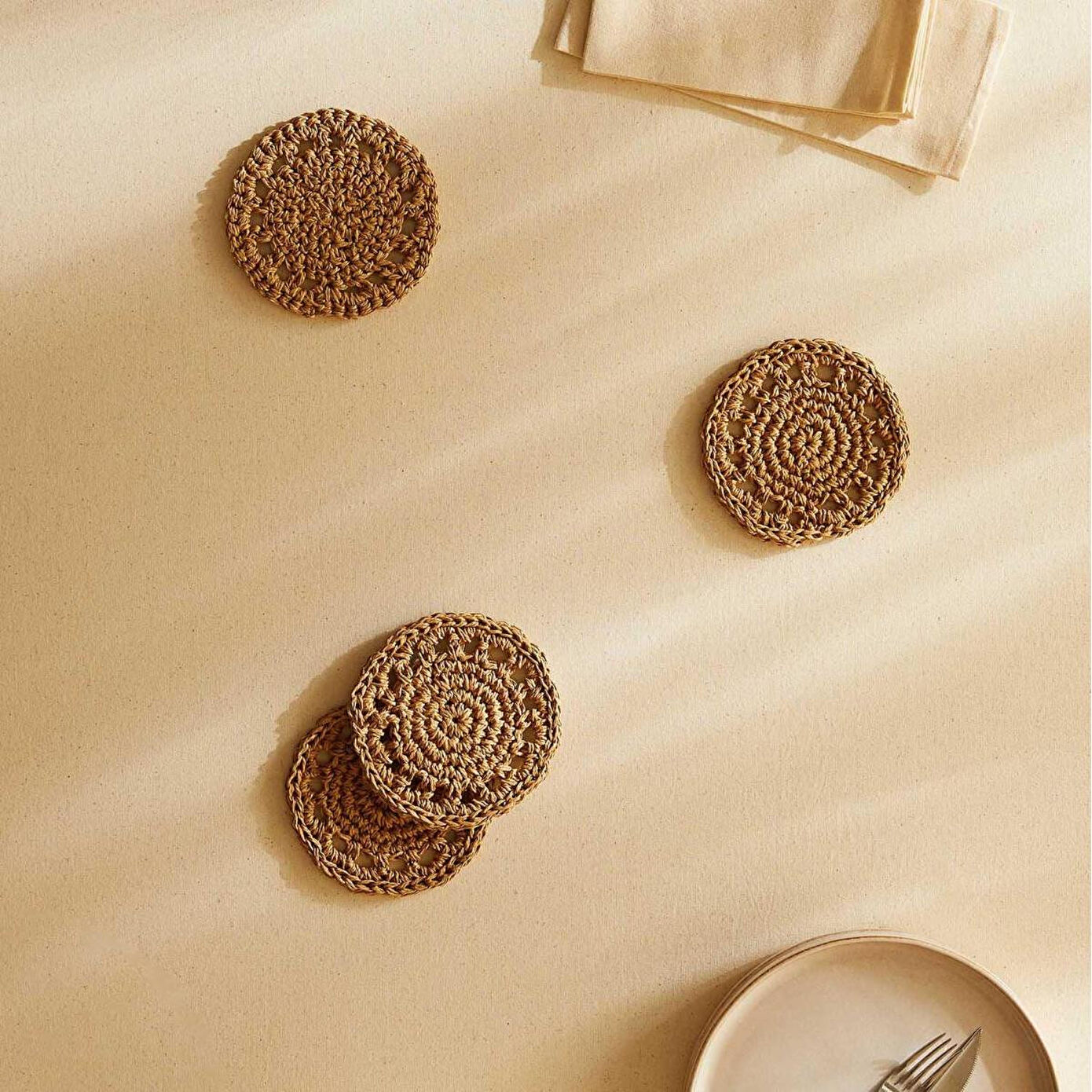 Ocean Home Textile 4'lü Bej Renk Motifli Rafya Bardak Altlığı Özellikleri
