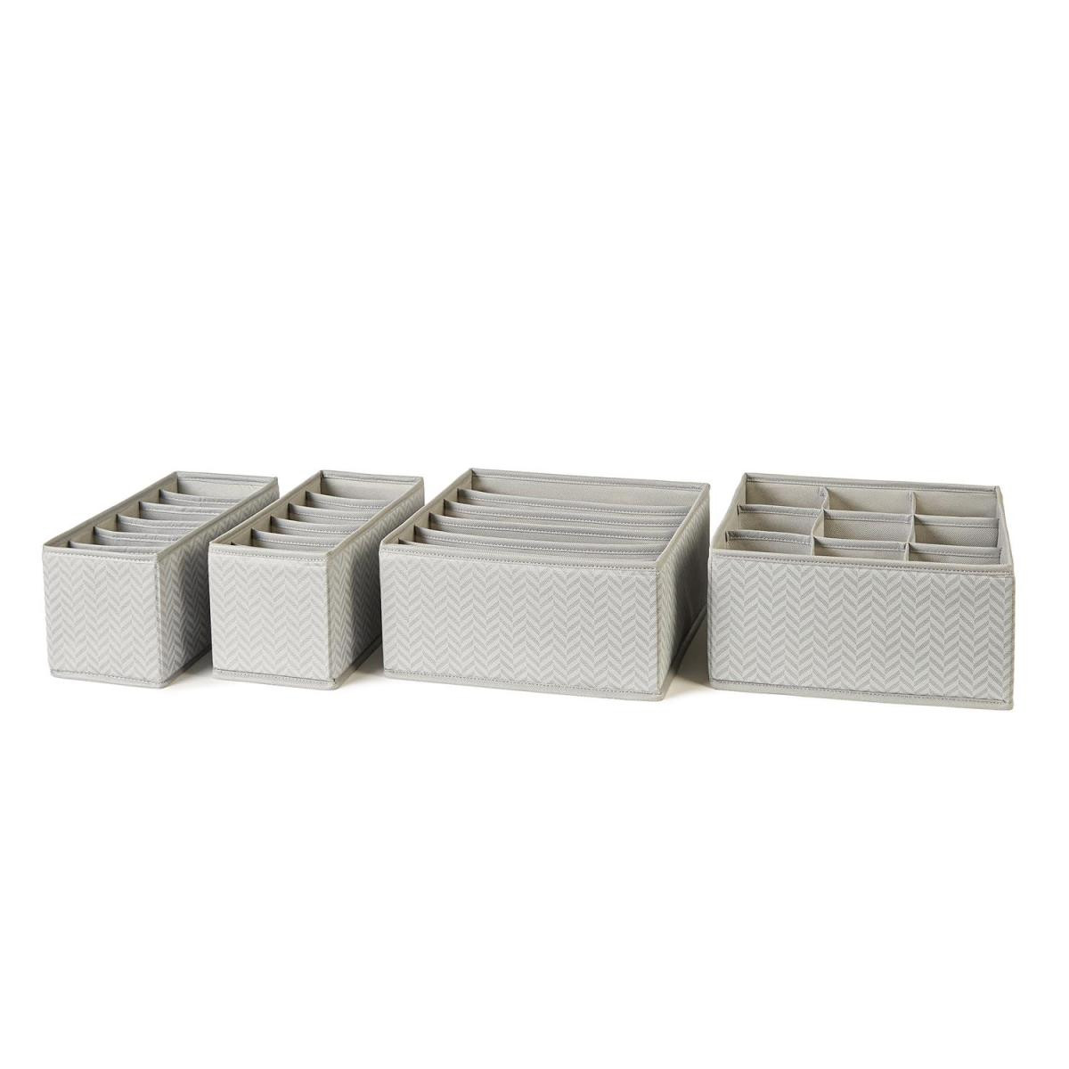 Ocean Home Textile 4'lü Bölmeli Gri Balıksırtı Çekmece İçi Düzenleyici Kutu Set
