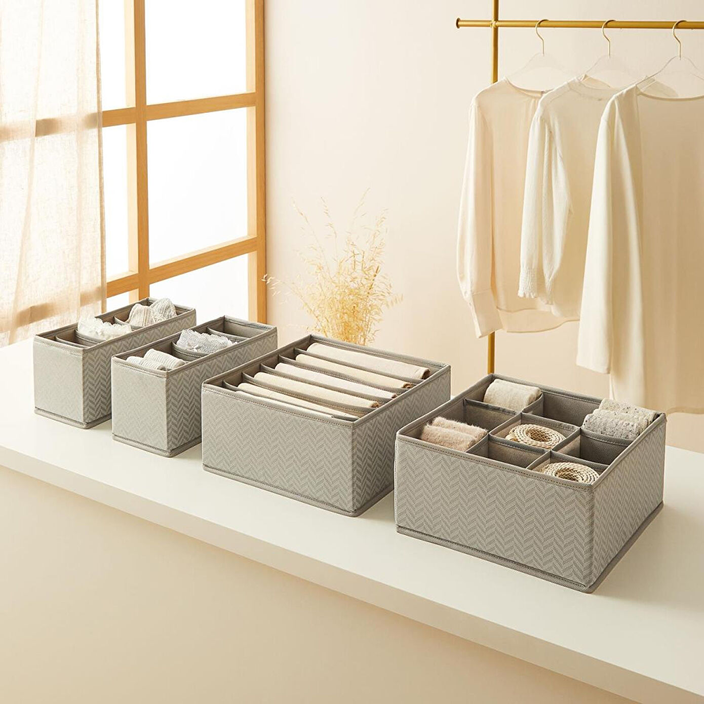 Ocean Home Textile 4'lü Bölmeli Gri Balıksırtı Çekmece İçi Düzenleyici Kutu Set Özellikleri