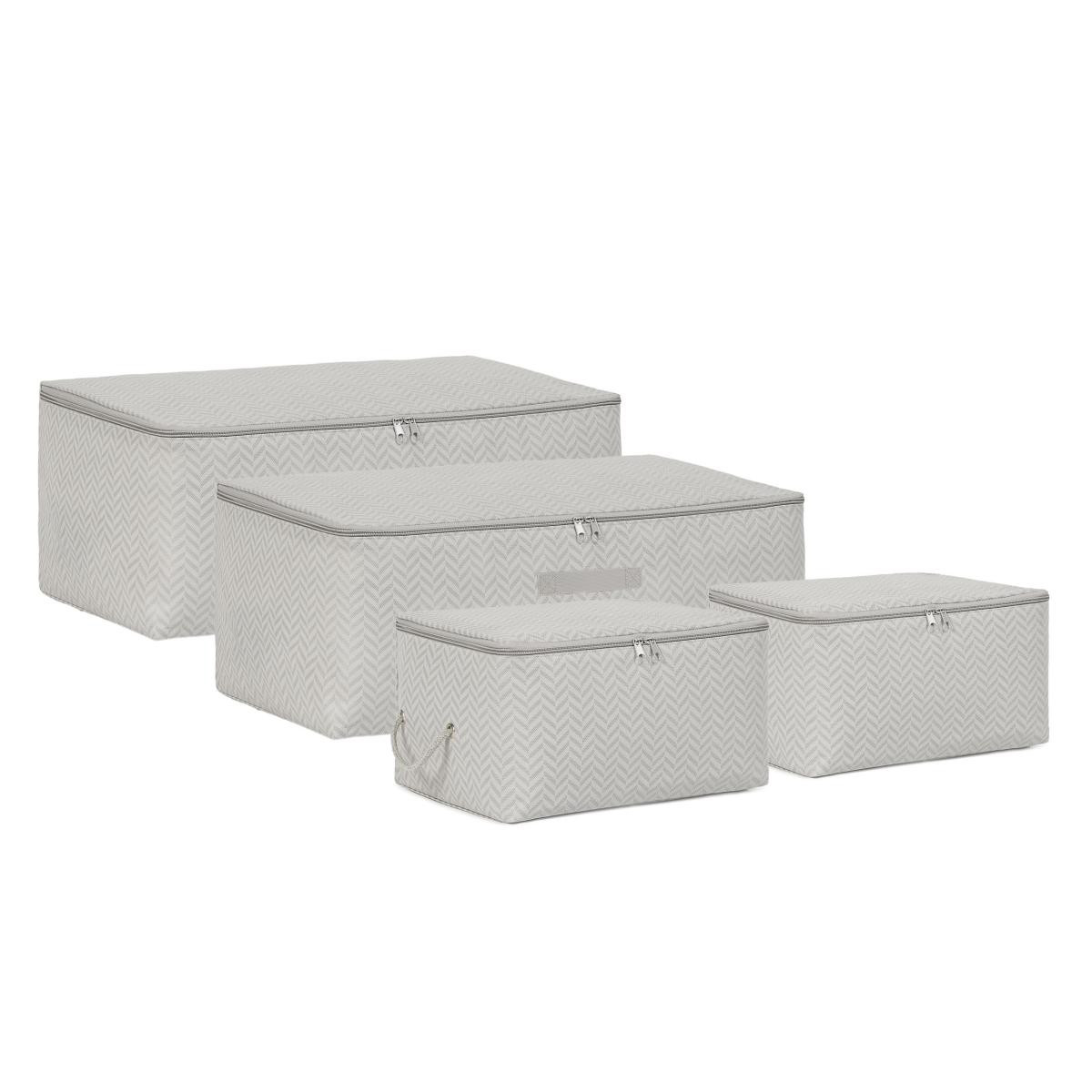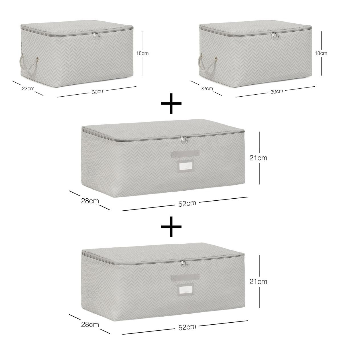 Ocean Home Textile 4'lü Gri Balıksırtı Hurç Set 2 Adet 30 X 22 X 18 / 2 Adet 52 X 28 X 21 Cm