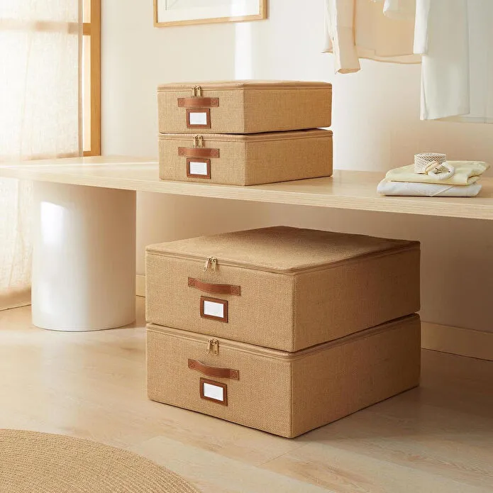 4 Adet Naturel Renk Destekli Kutu Hurç