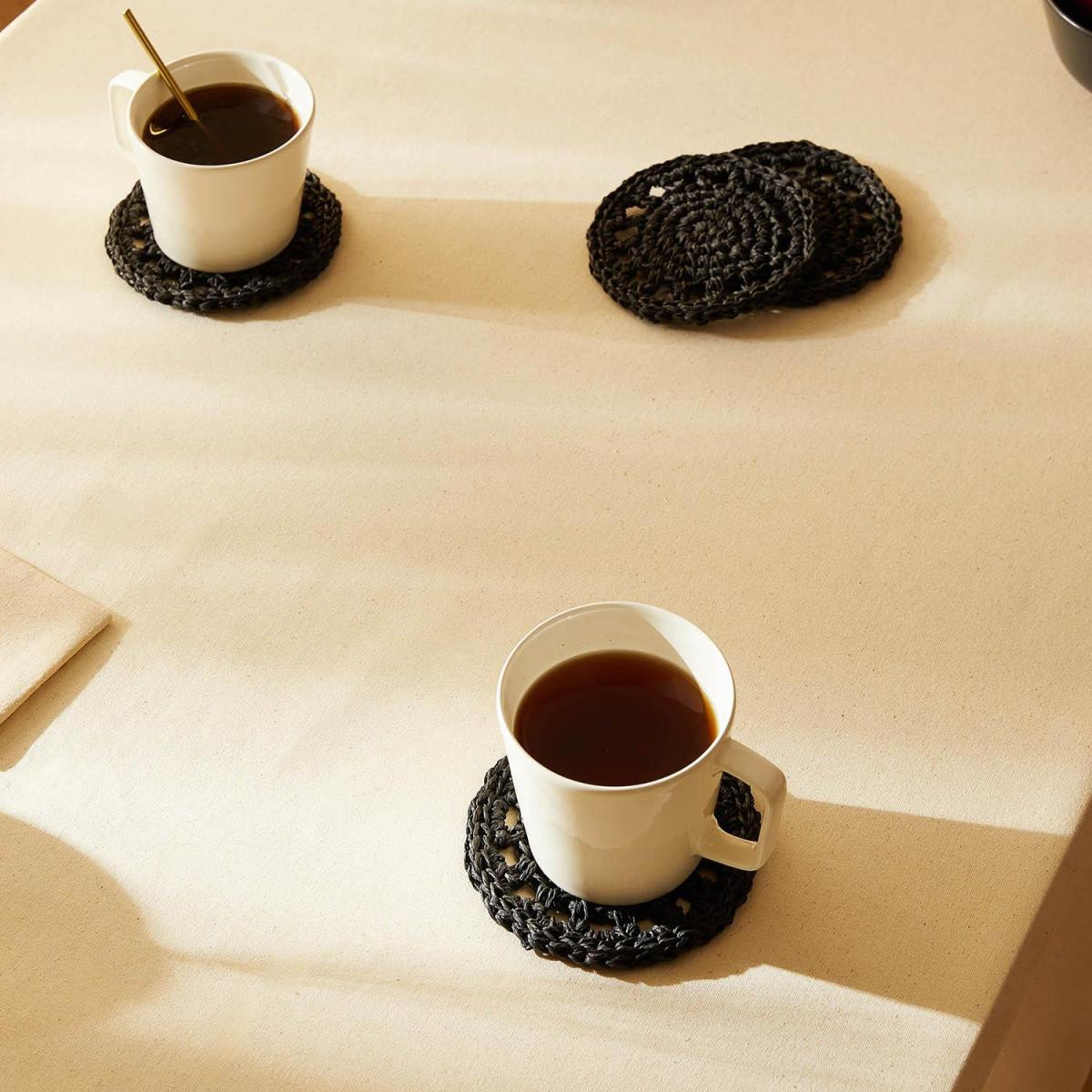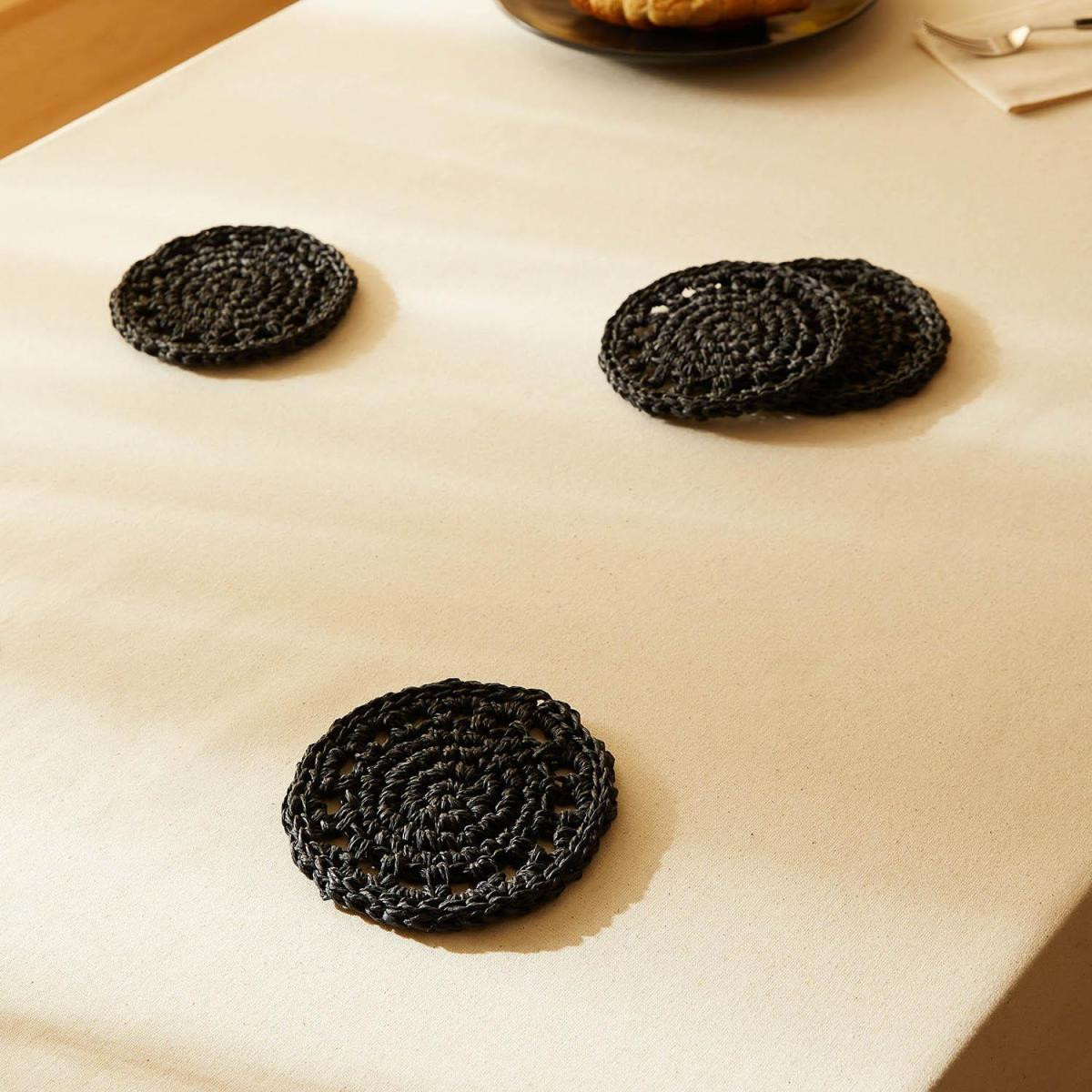 Ocean Home Textile 4'lü Siyah Renk Motifli Rafya Bardak Altlığı Özellikleri