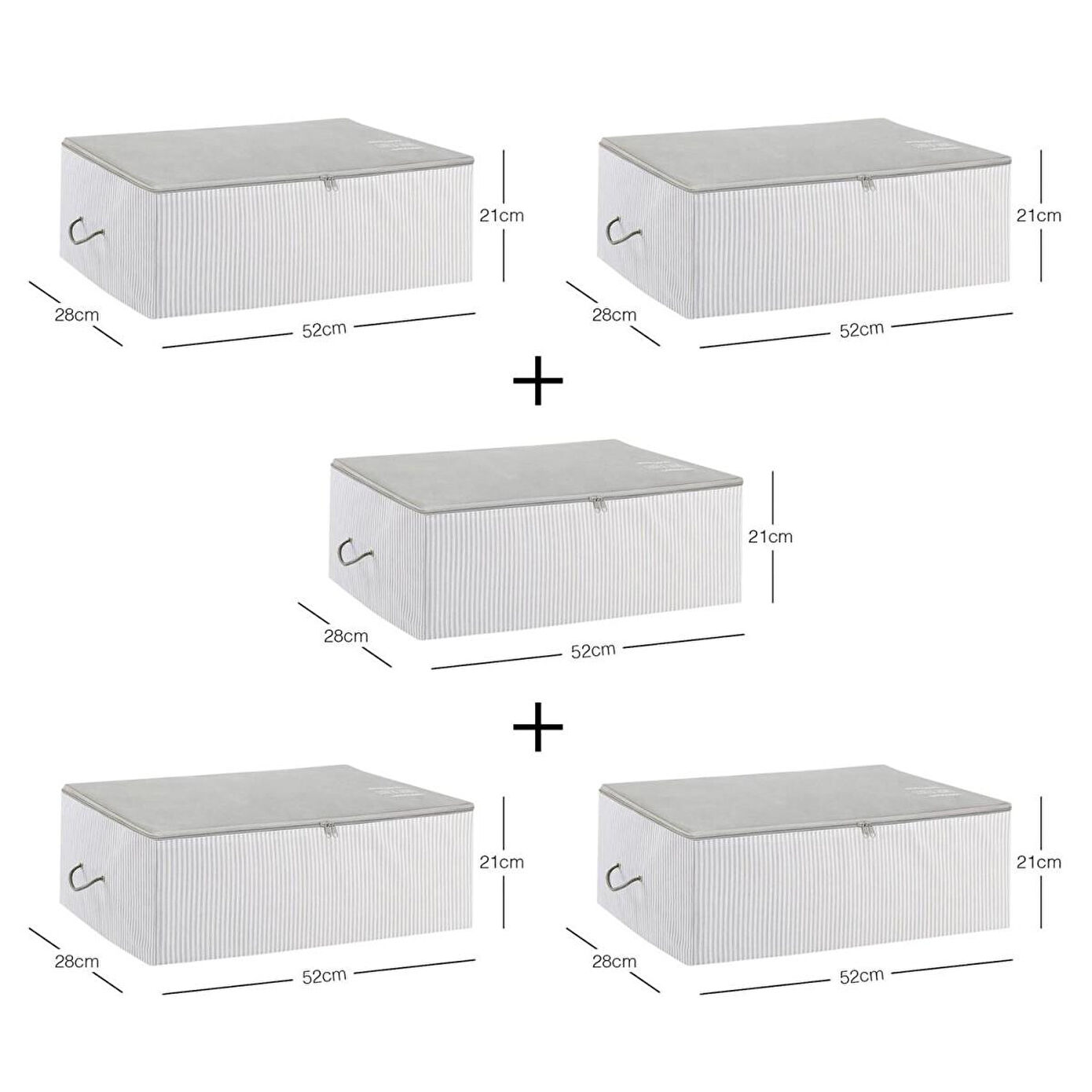 Ocean Home Textile 5'li Orta Boy Gri Çizgili Stuff & Things Hurç Set 52 X 28 X 21 Cm