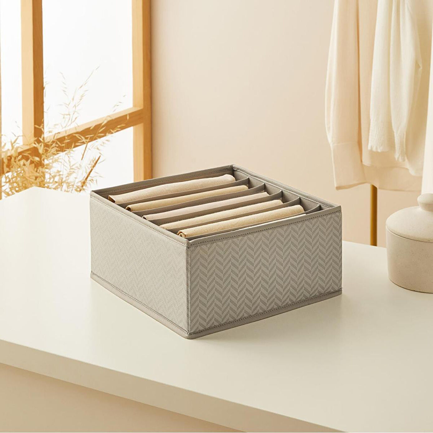 Ocean Home Textile 6 Bölmeli Gri Balıksırtı Çekmece İçi Düzenleyici Kutu 28 X 28 X 13 Cm