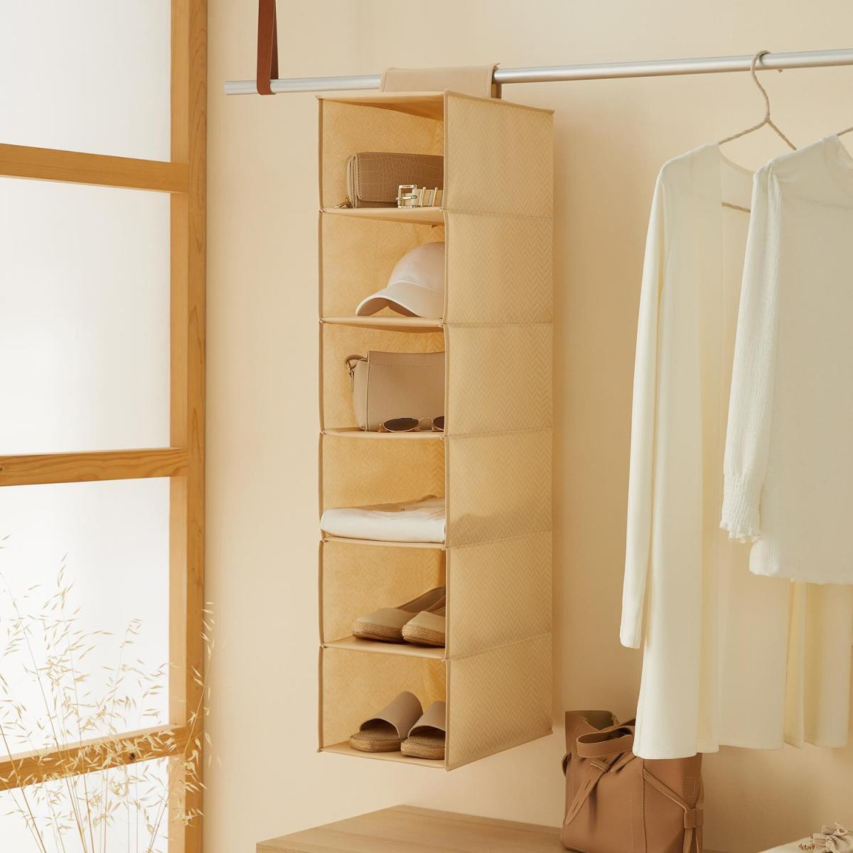 Ocean Home Textile 6 Katlı Bej Balıksırtı Dolap İçi Düzenleyici 21 X 30 X 95 Cm