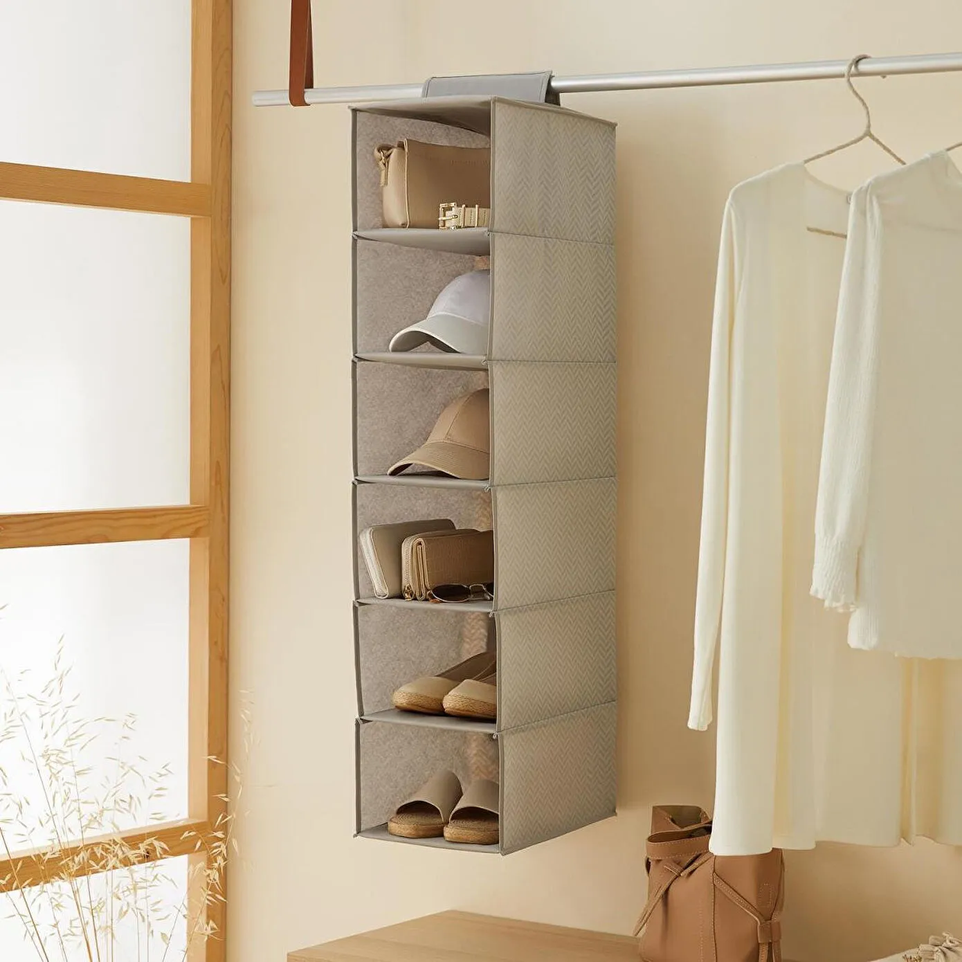 Askılı dolap içi düzenleyici, katlanmış kıyafetler, iç çamaşırı, havlu, pijama, şapka gibi kıyafetleri ve aksesuarları saklamak için dolaplarınızda geniş bir alan sunar.