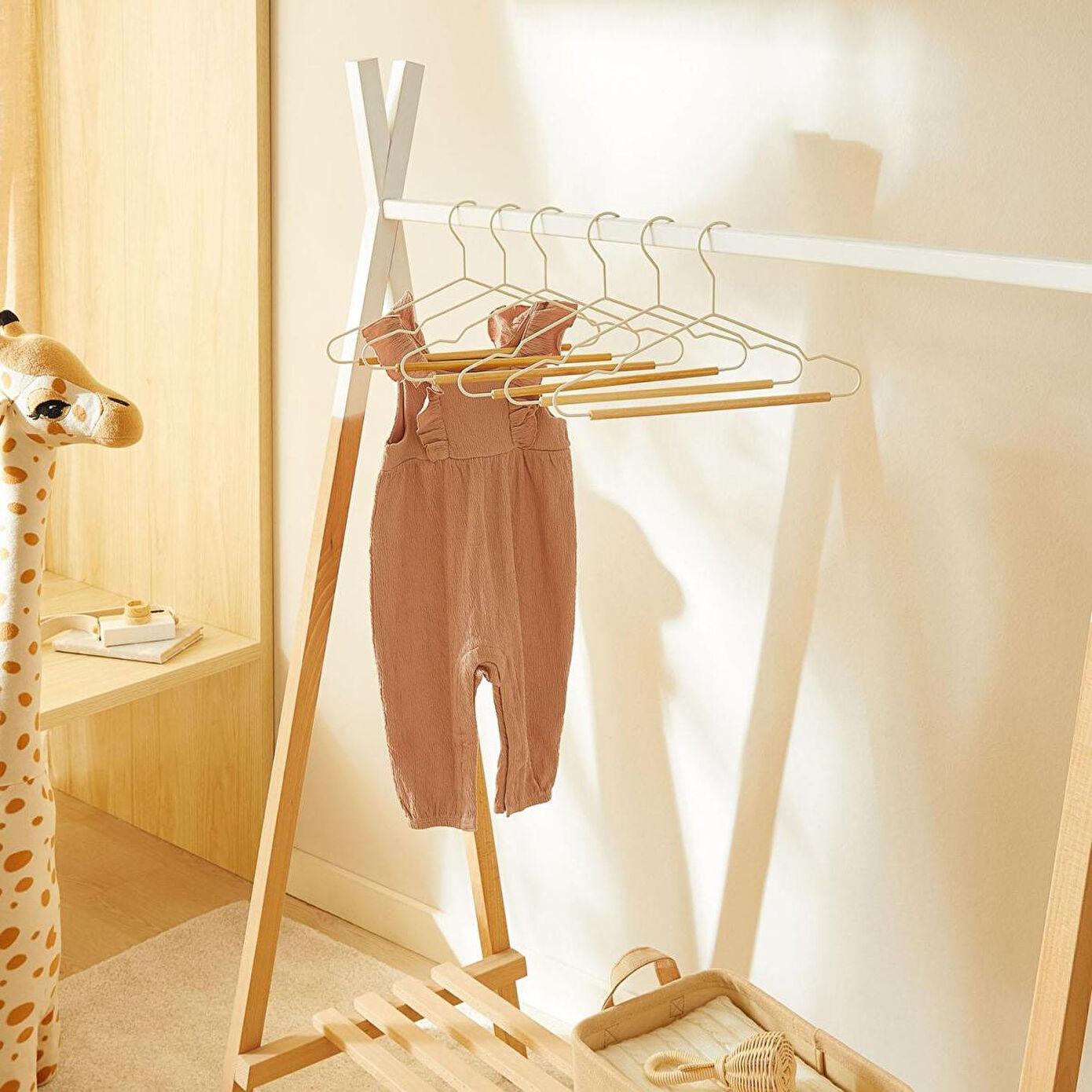 Çocuk kıyafet askıları zarif mat kauçuk kaplama detayıyla, kayma riskini en aza indirerek giysilerin kusursuzca yerinde kalmasını sağlar.