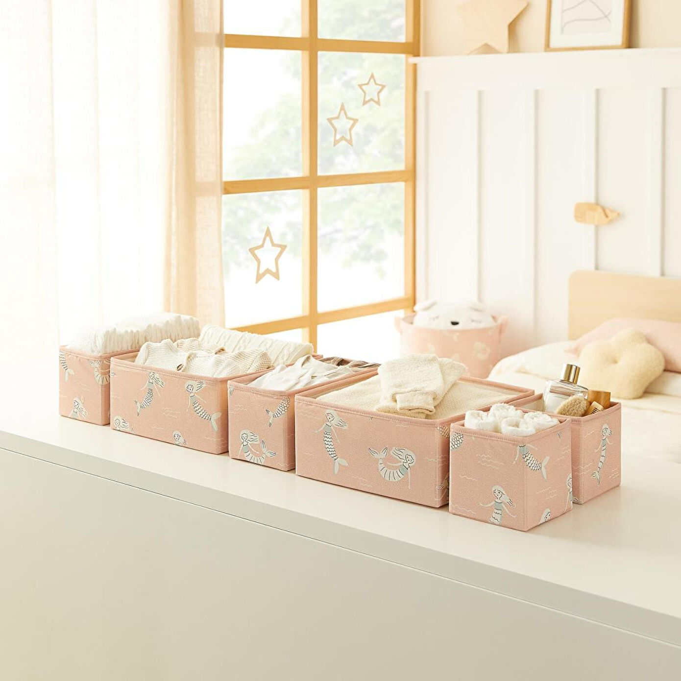 Ocean Home Textile 6'lı Çocuk Odası Deniz Kızı Çekmece İçi Düzenleyici Kutu