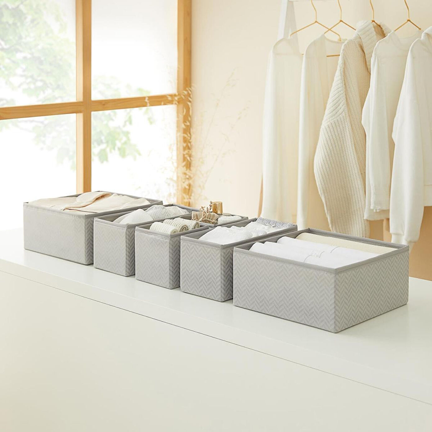 Çorap, iç çamaşırı, kravat, kemer, bebek eşyaları ve birçok ürünü, dağınıklığa yol açmadan kolayca düzenlemek amacıyla kullanılabilir.