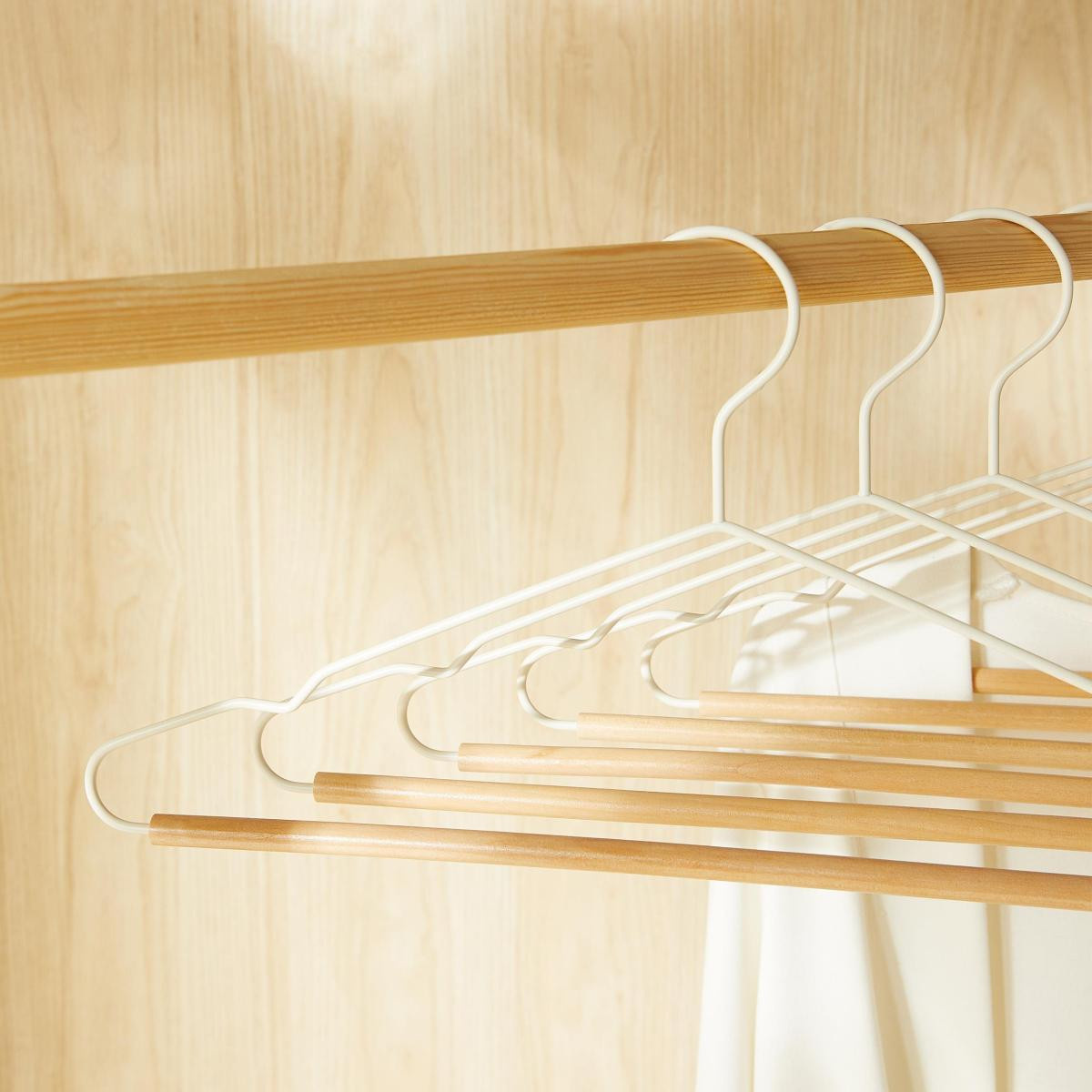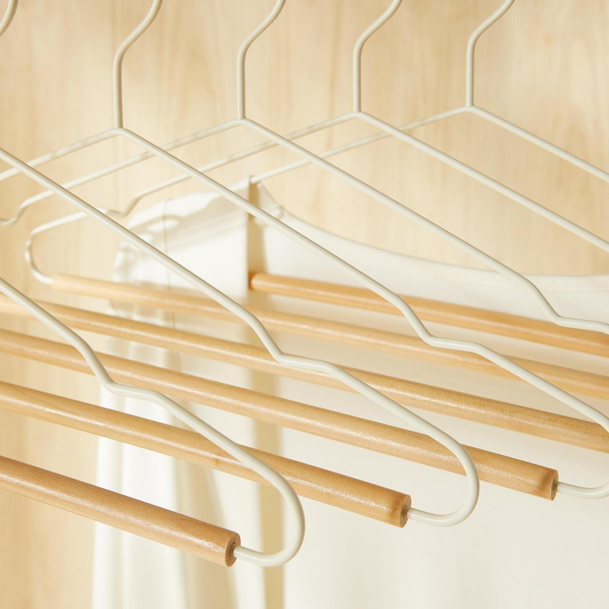 Ahşap destekli metal yapısı, kıyafetlerin düzenli durmasını sağlarken formunu korumaya yardımcı olur.