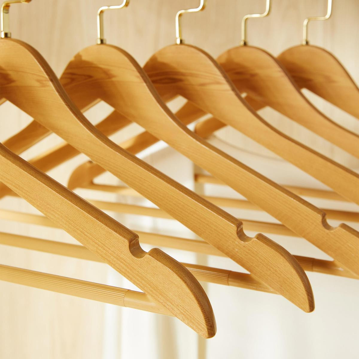 Ahşap görünümlü giysi askısı; pantolon, etek, gömlek ve benzeri birçok kıyafet için uygundur.
