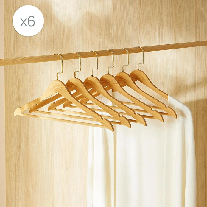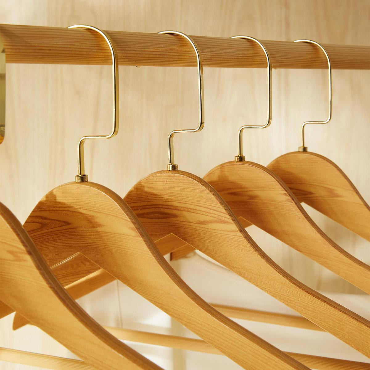 Ahşap görünümlü ABS plastik, dayanıklı, hafif ve nem ile darbelere karşı dirençli yapısıyla giysilerin düzenli ve estetik bir şekilde asılmasını sağlar.