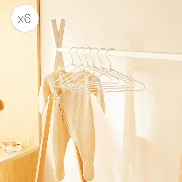 Ocean Home Textile 6'lı Beyaz Renk Kumaş Kaplı Metal Bebek Giysi Askısı19.5 X 30 X 0.3 Cm
