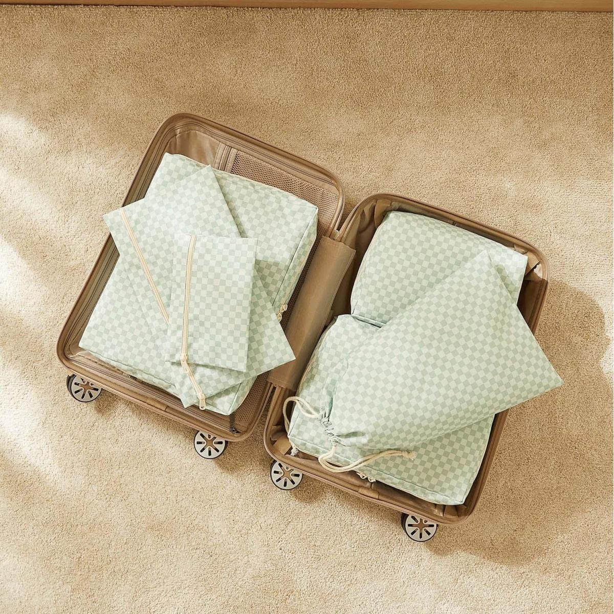 Ocean Home Textile 6'lı Mint Dama Desen Pamuklu Bavul İçi Düzenleyici Set
