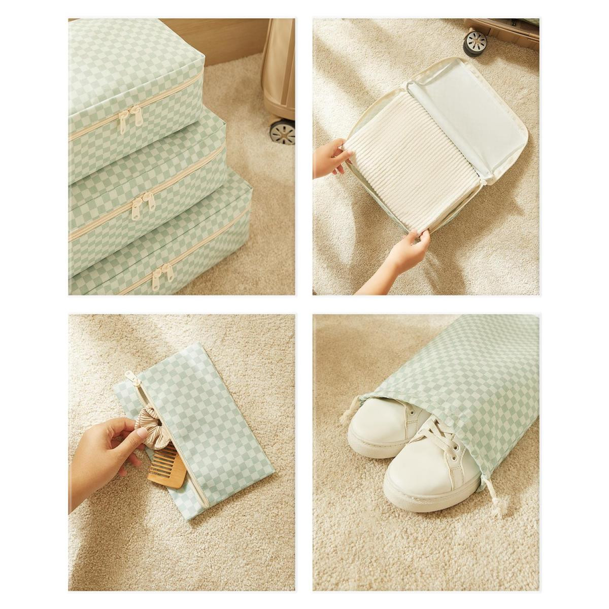 Ocean Home Textile 6'lı Mint Dama Desen Pamuklu Bavul İçi Düzenleyici Set Özellikleri