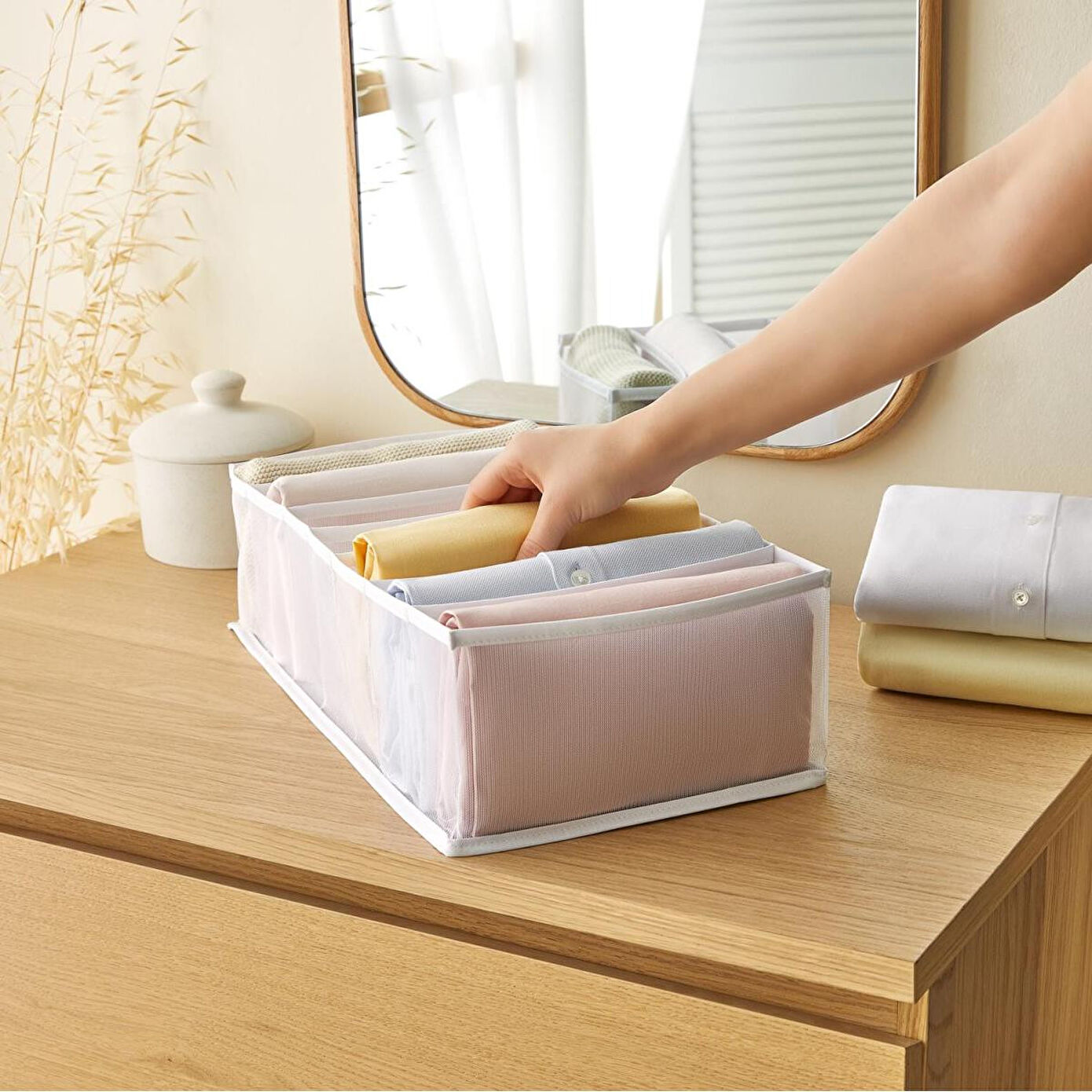 Çorap, takı, çamaşır, aksesuar gibi eşyaların düzenini sağlayan organizerler, çekmece içlerinin düzenini oluştururken üründe bulunan bölmeler sayesinde ihtiyaç duyulan eşyaların kolayca bulunmasına yardımcı olur.