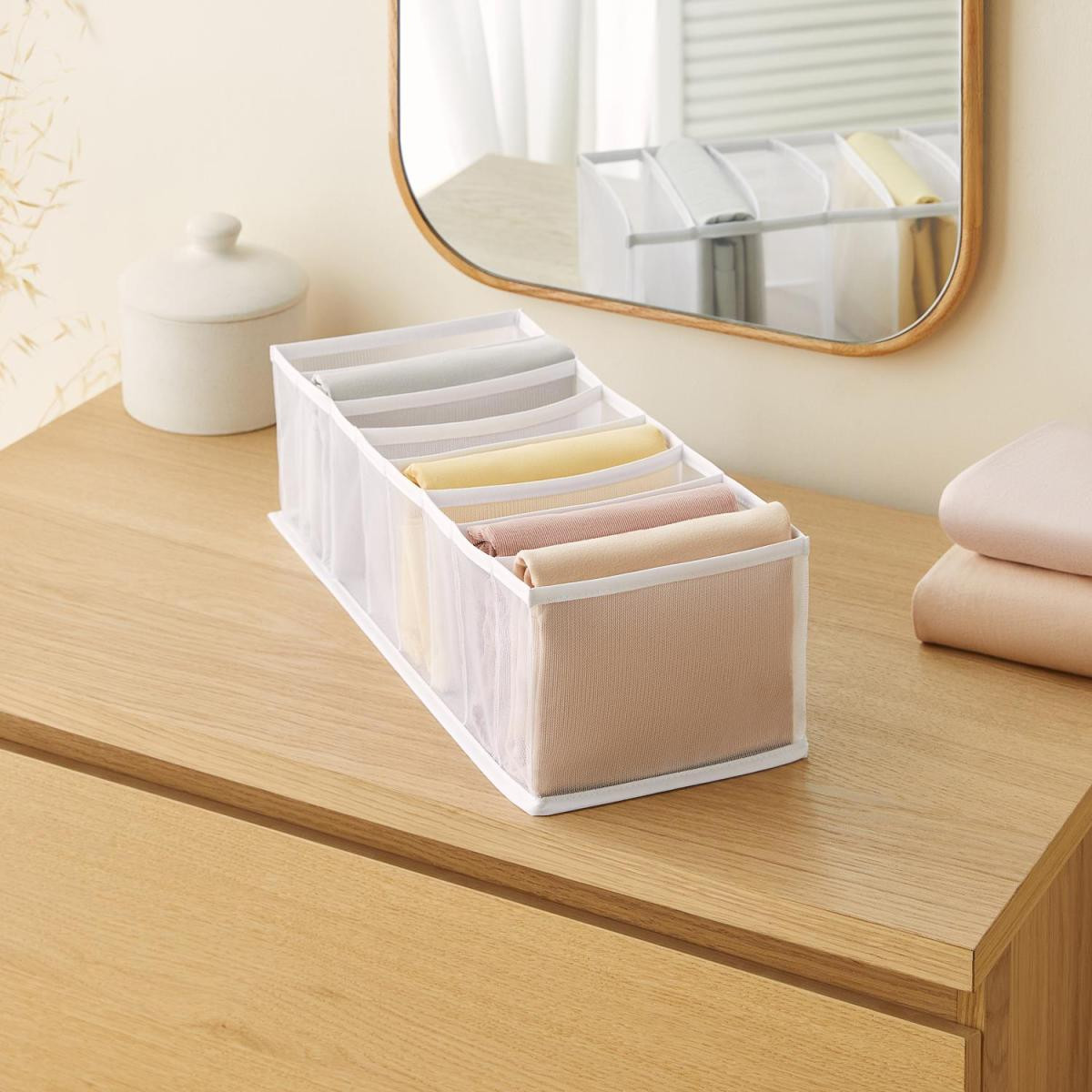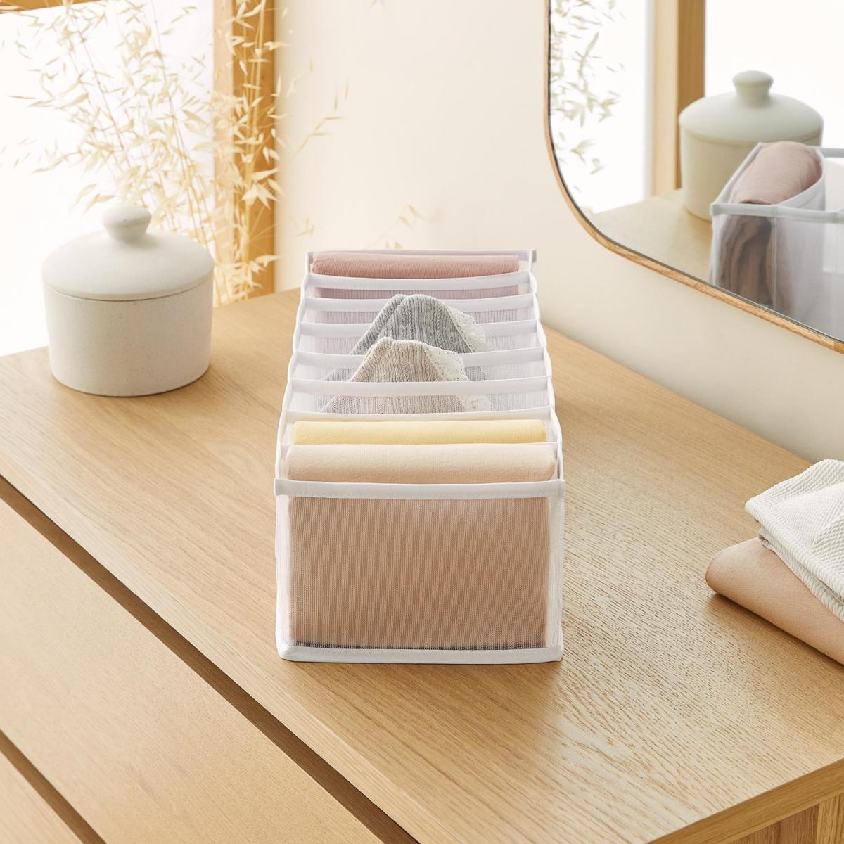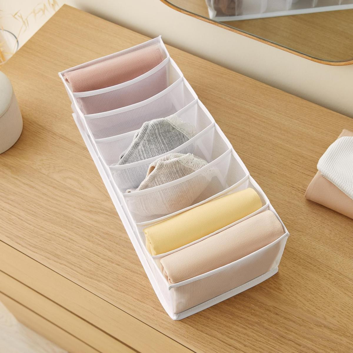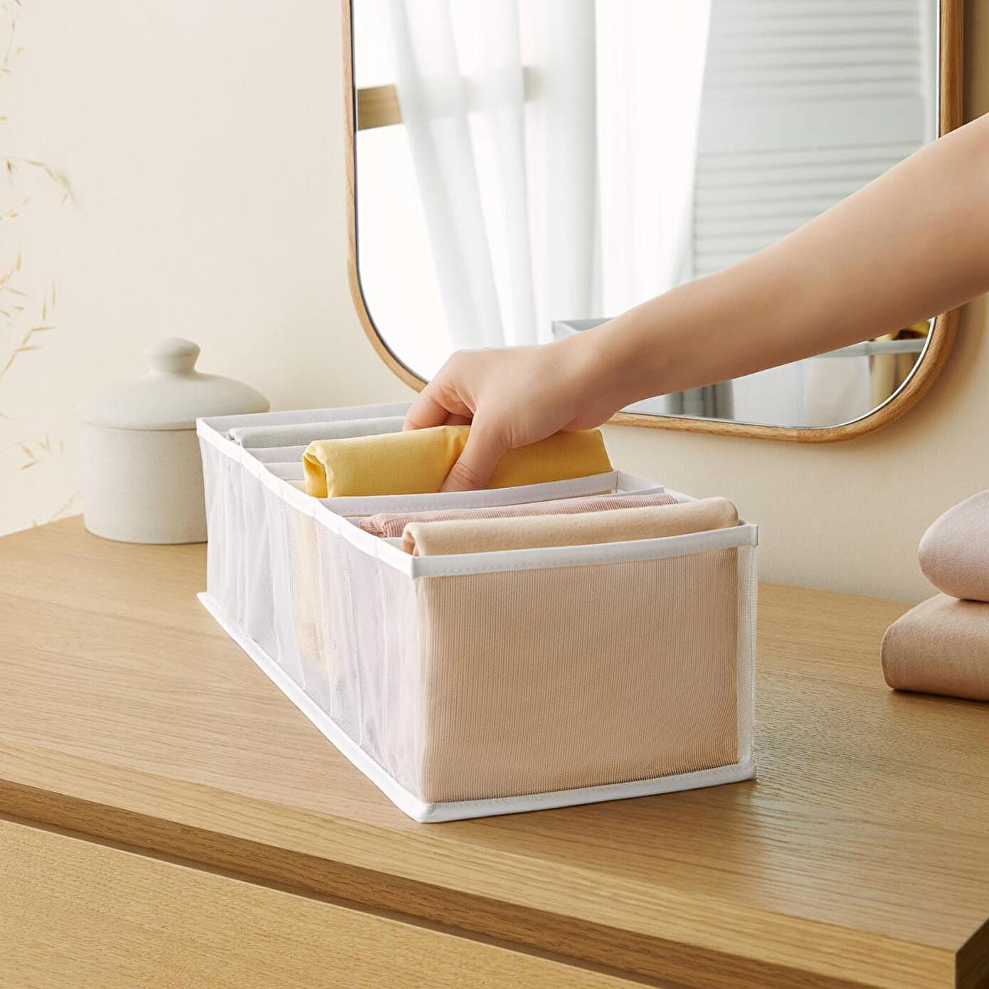 Çorap, takı, çamaşır, aksesuar gibi eşyaların düzenini sağlayan organizerler, çekmece içlerinin düzenini oluştururken üründe bulunan bölmeler sayesinde ihtiyaç duyulan eşyaların kolayca bulunmasına yardımcı olur.