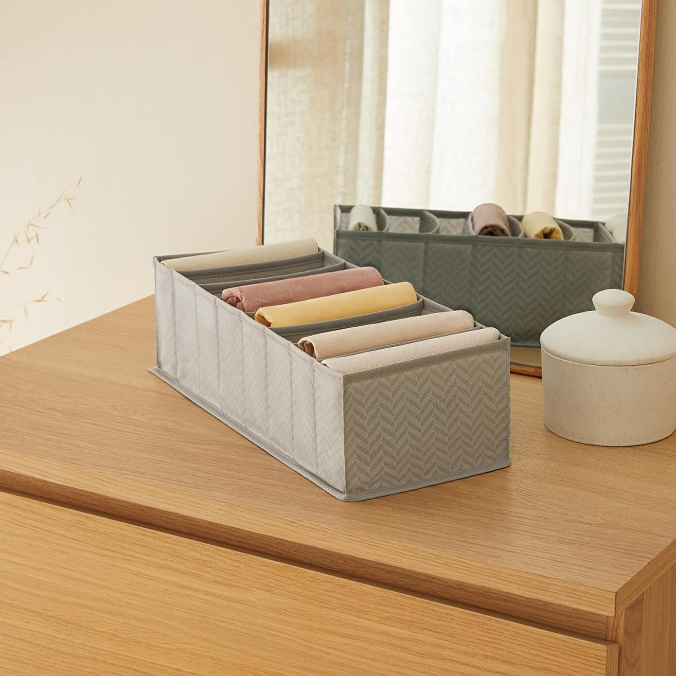 Çorap, takı, çamaşır, aksesuar gibi eşyaların düzenini sağlayan organizerler, çekmece içlerinin düzenini oluştururken üründe bulunan bölmeler sayesinde ihtiyaç duyulan eşyaların kolayca bulunmasına yardımcı olur.