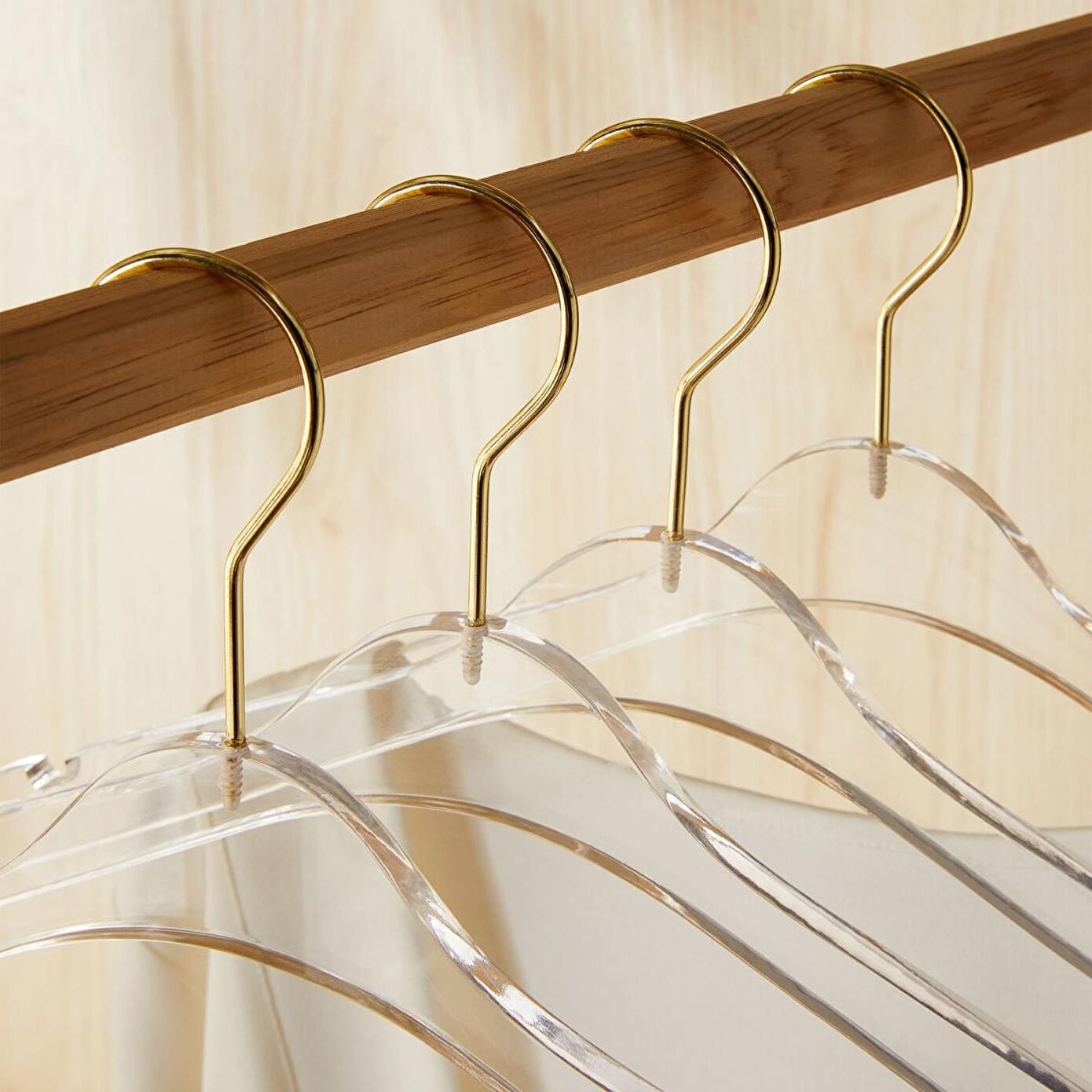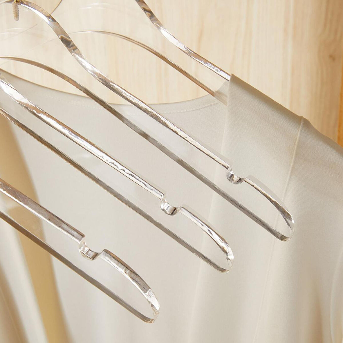 Şeffaf kıyafet askıları, dolapları ve giysileri düzenli tutmak için mükemmel bir seçenektir.