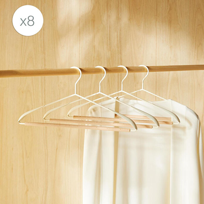 Ocean Home Textile 8'li Ahşap Destekli Omuz Formlu Mat Beyaz Renk Metal Giysi Askısı Özellikleri