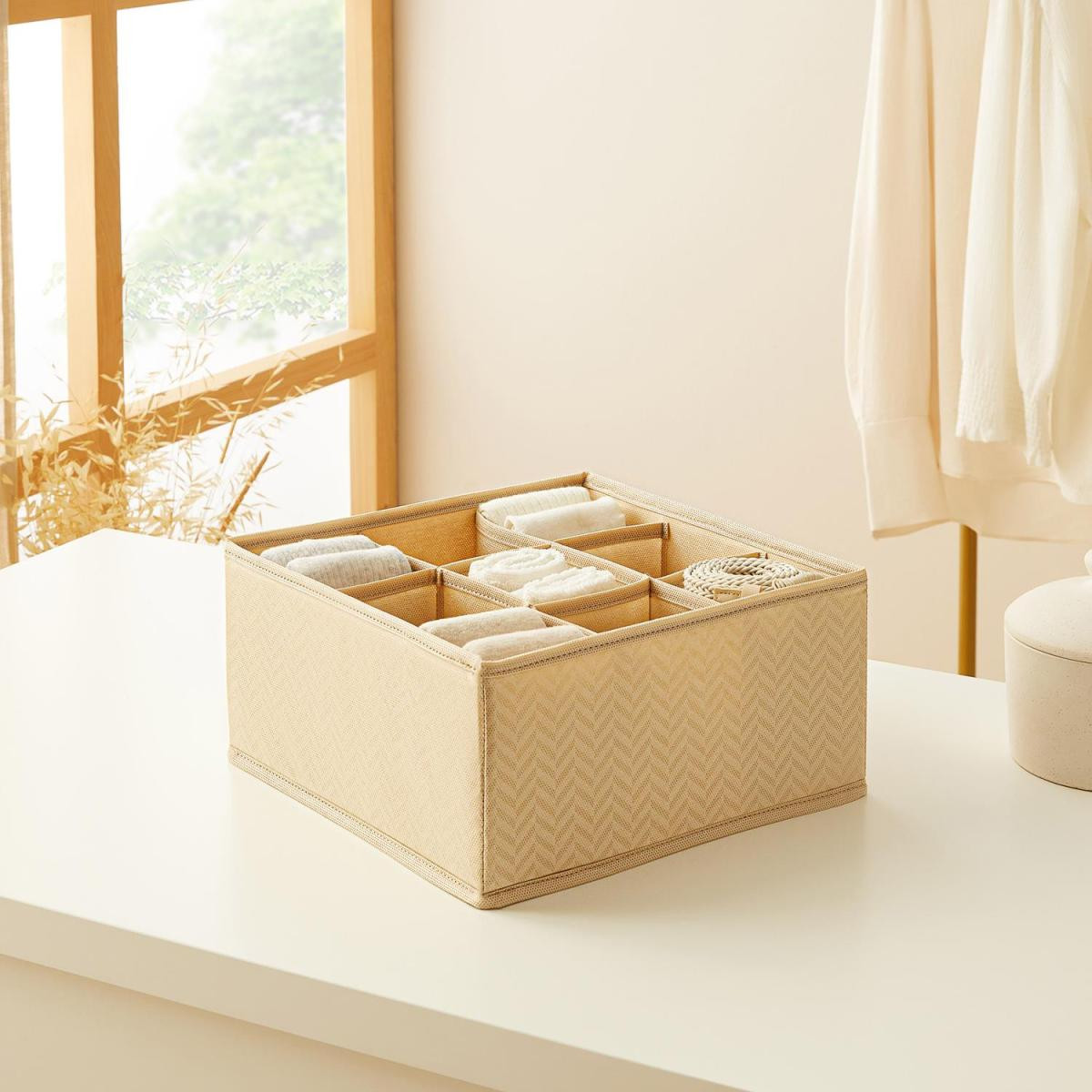 Ocean Home Textile 9 Bölmeli Petek Bej Balıksırtı Çekmece İçi Düzenleyici Kutu 28 X 28 X 13 Cm