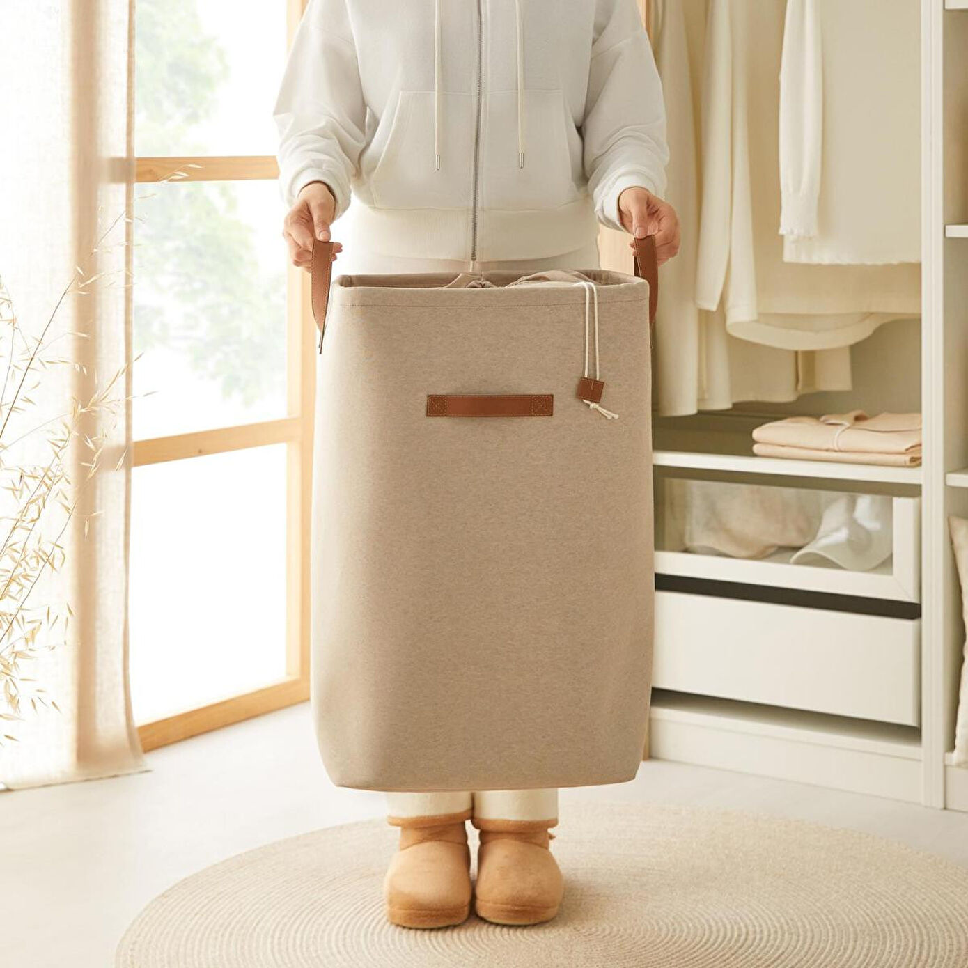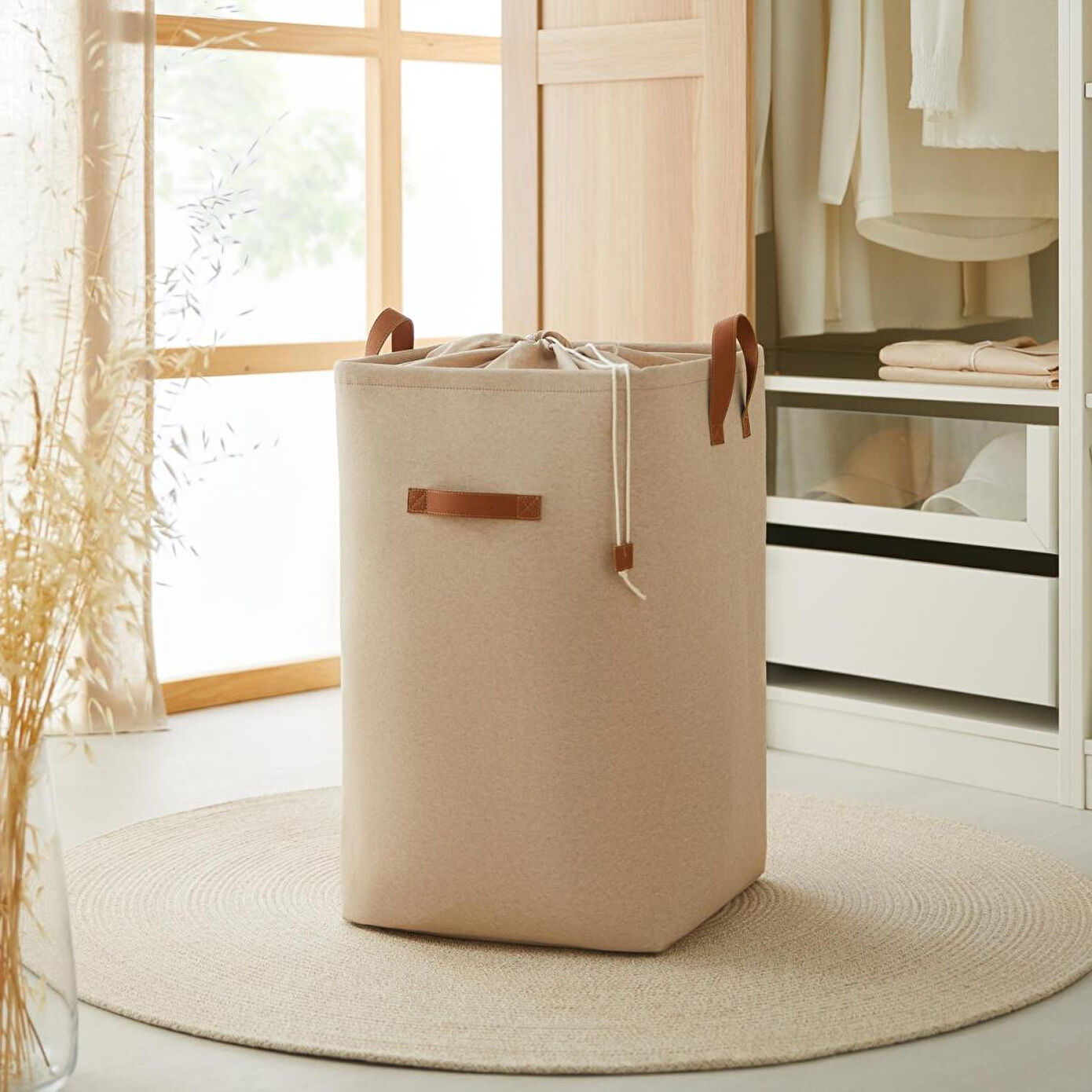 Ocean Home Textile Ağzı Büzgülü Bej Renk Çamaşır Sepeti Özellikleri