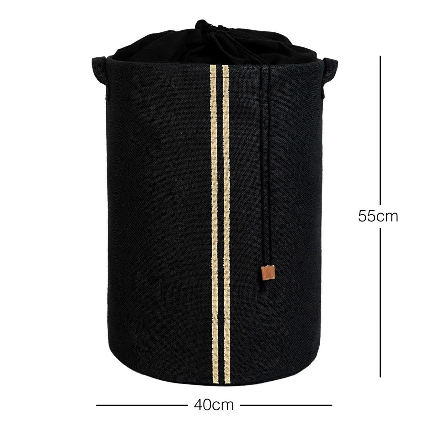 Ocean Home Textile Ağzı Büzgülü Çizgili Siyah Renk Jüt Çamaşır Sepeti 40 X 55 Cm