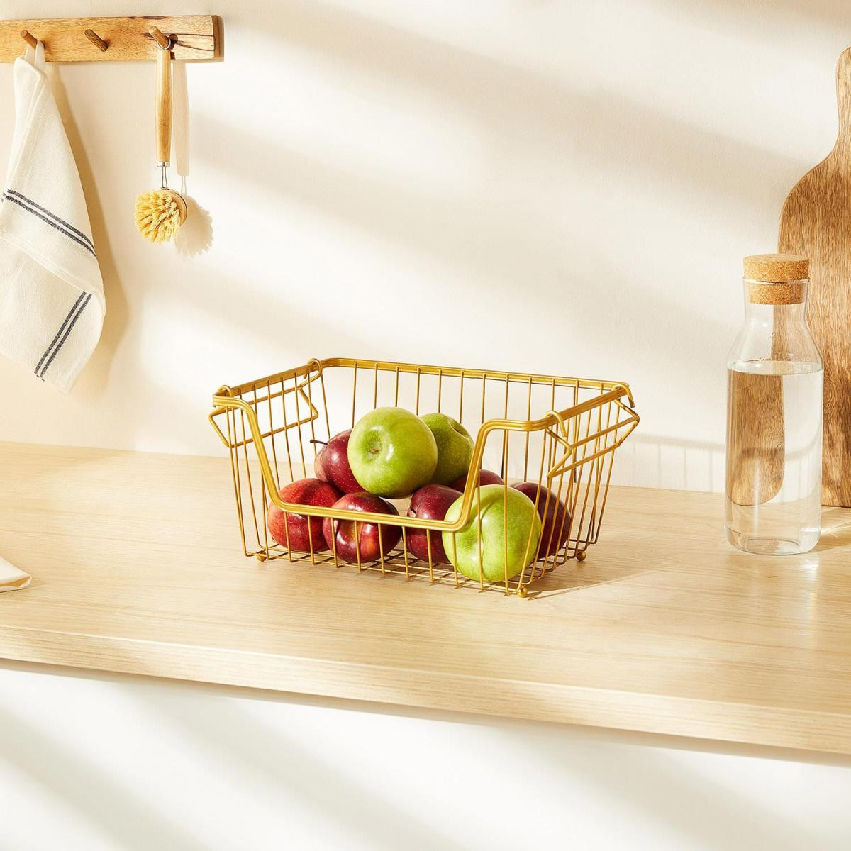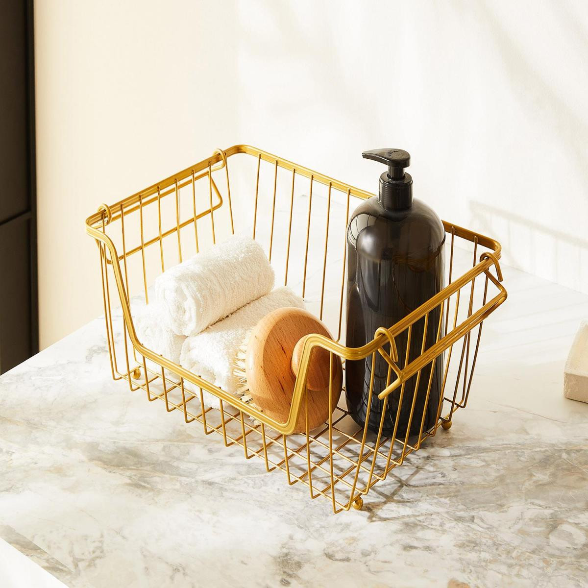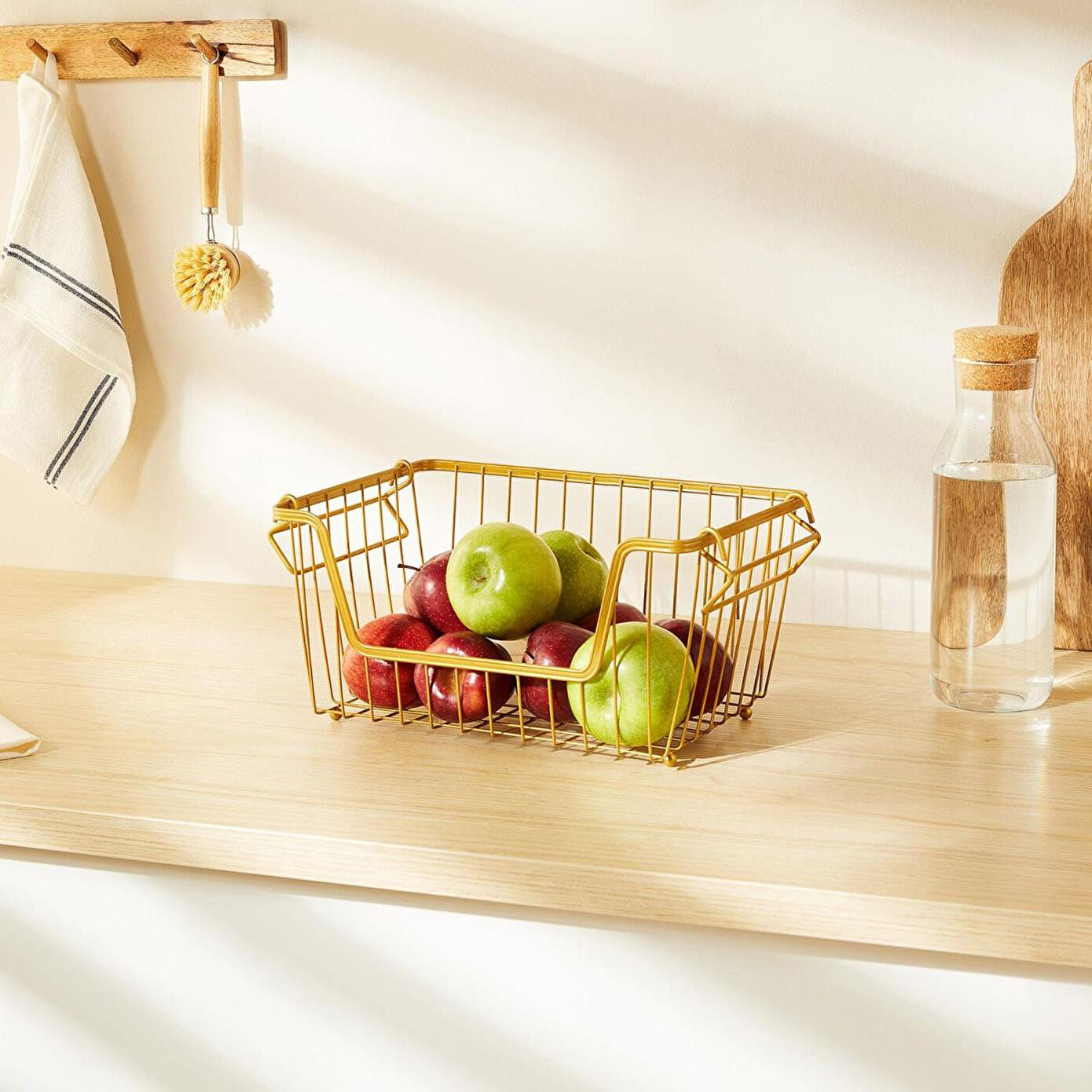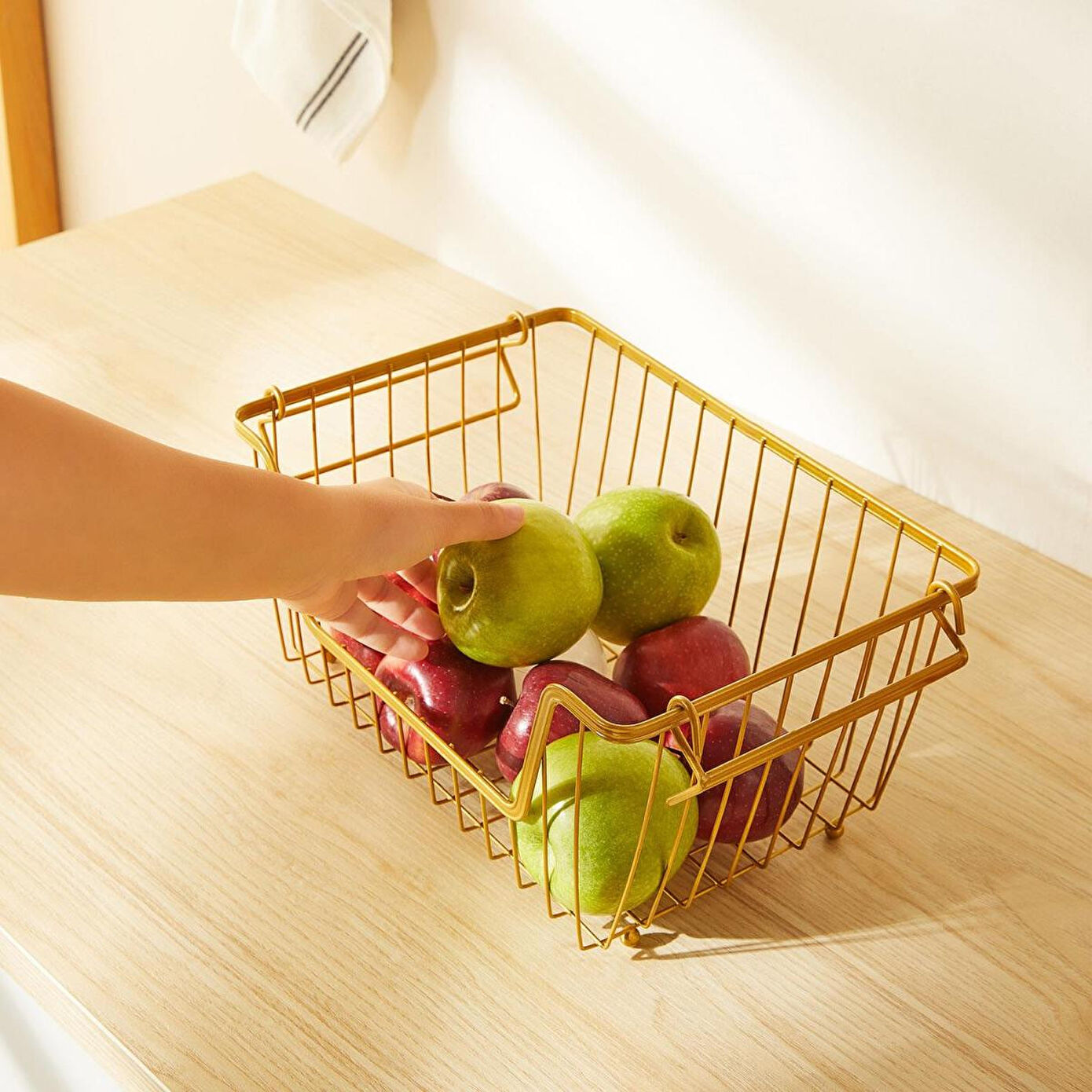 Metal sepet; mutfakta meyve, sebze ve kavanozları düzenlemekten banyoda havlu ve bakım ürünlerini sergilemeye, salonda dergi ve aksesuarları toplamaktan ofiste evrakları organize etmeye kadar çok yönlü kullanım sunar. Ayrıca dolap içlerinde eşyaları düzenli tutmanıza yardımcı olur.