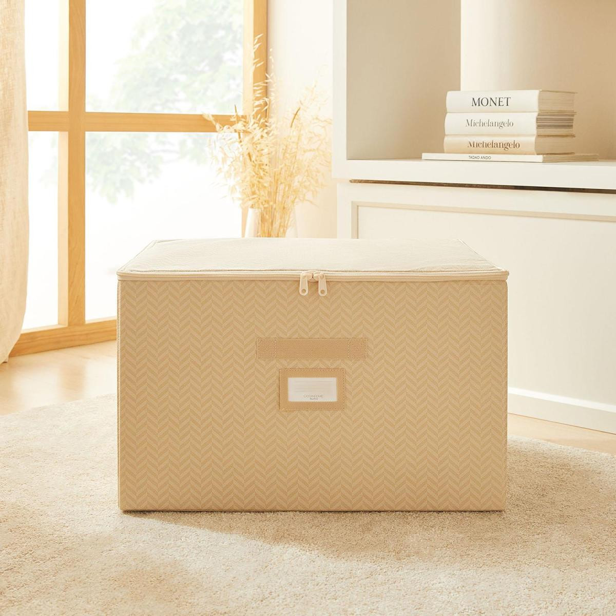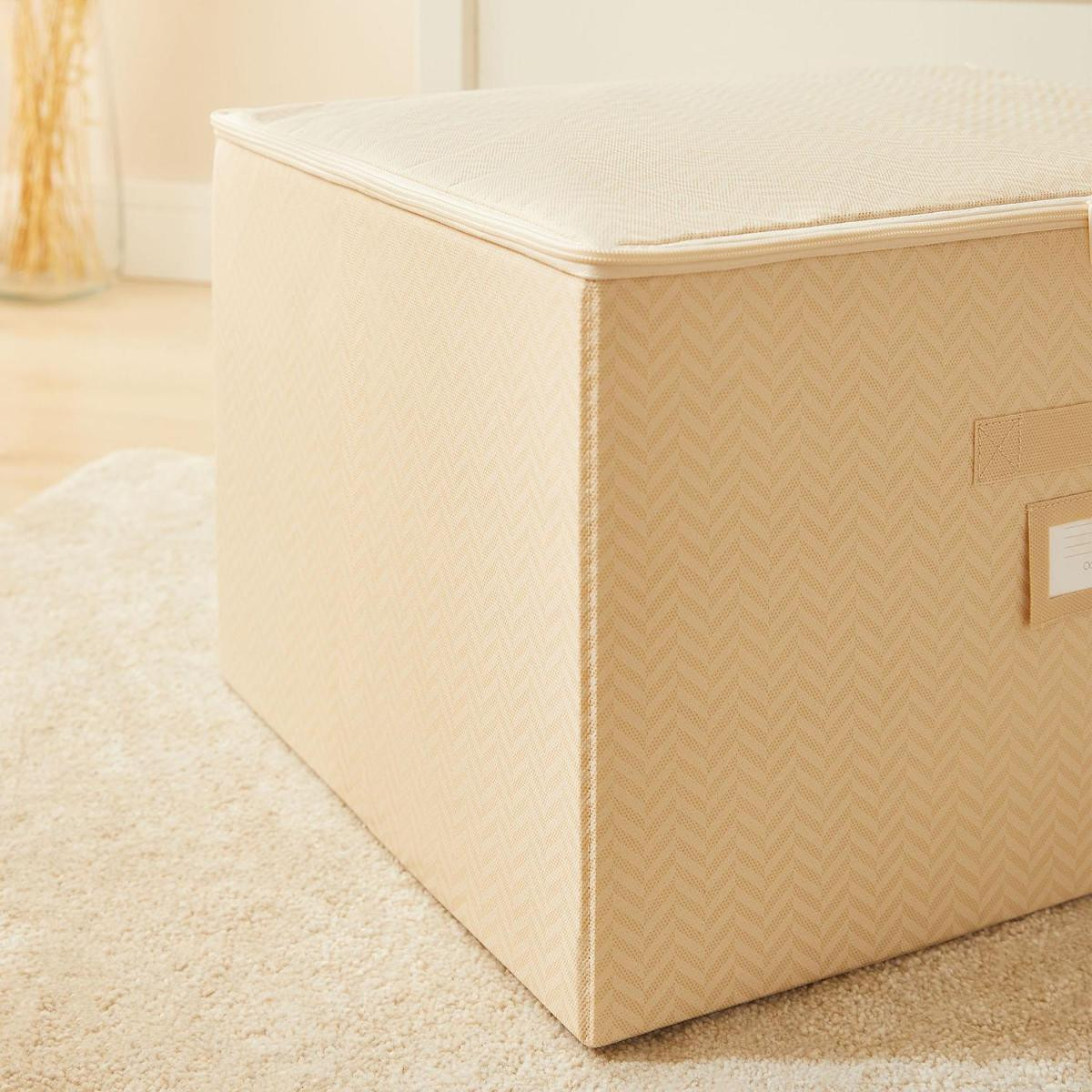 Ocean Home Textile Bej Balıksırtı Destekli Kutu Hurç 48 X 40 X 30 Cm
