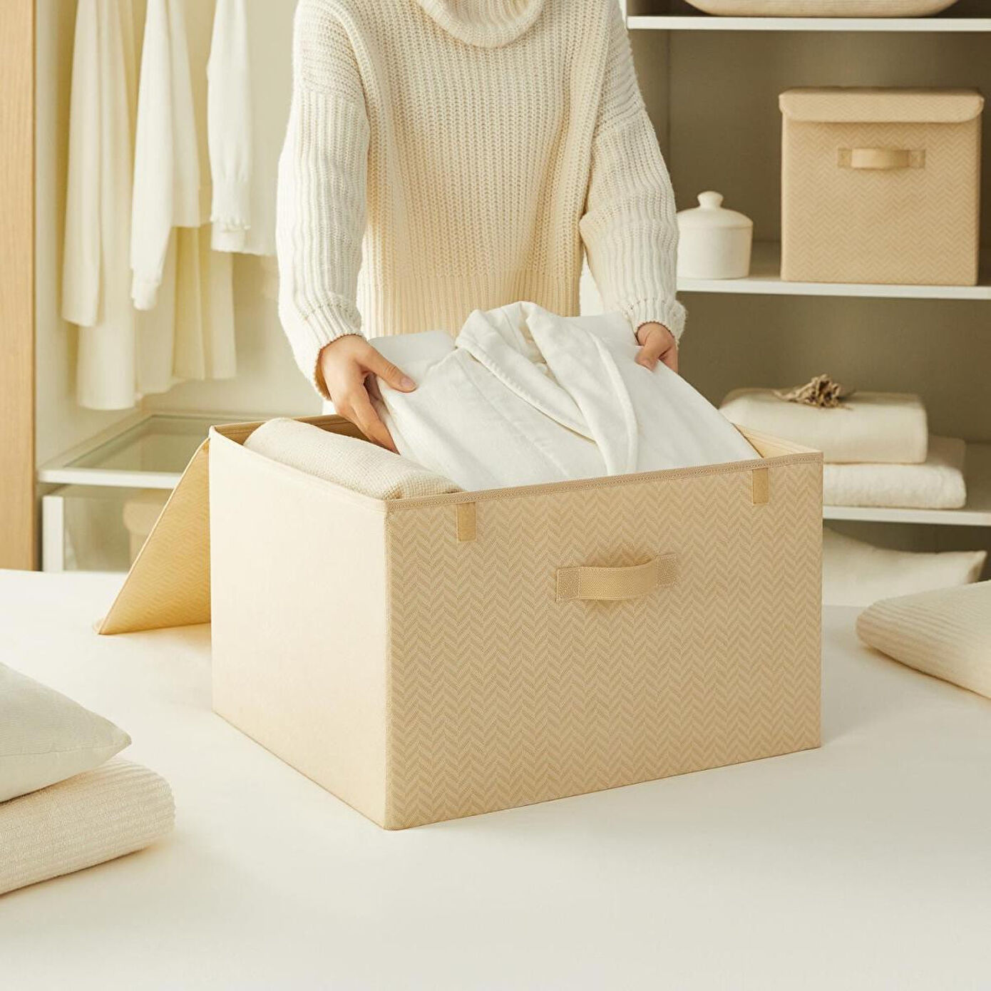 Ocean Home Textile Bej Balıksırtı Kapaklı Kutu Özellikleri