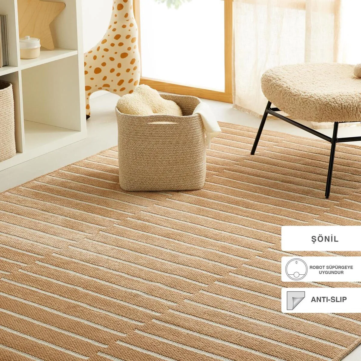 Ocean Home Textile Bej Renk Çizgi Desenli Şönil Halı Kilim Özellikleri