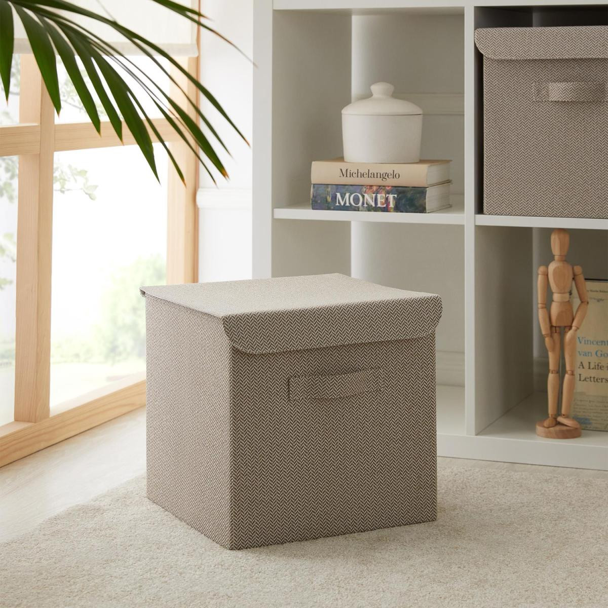 Ocean Home Textile Bej Renk Dokulu Kumaş Kapaklı Kutu 30 X 30 X 30 Cm