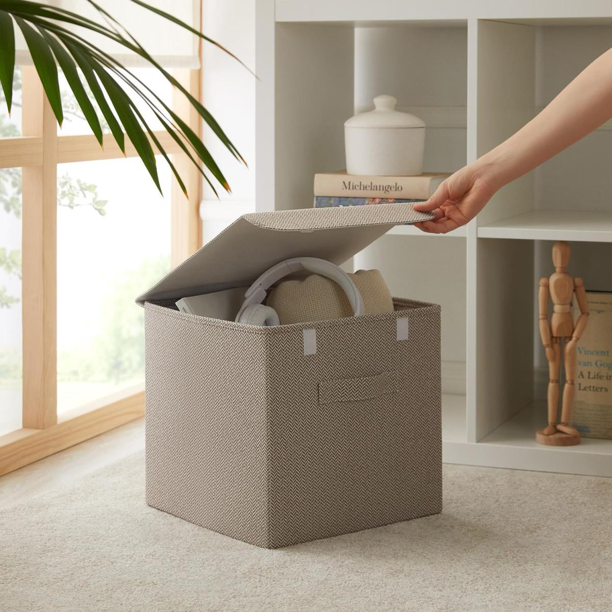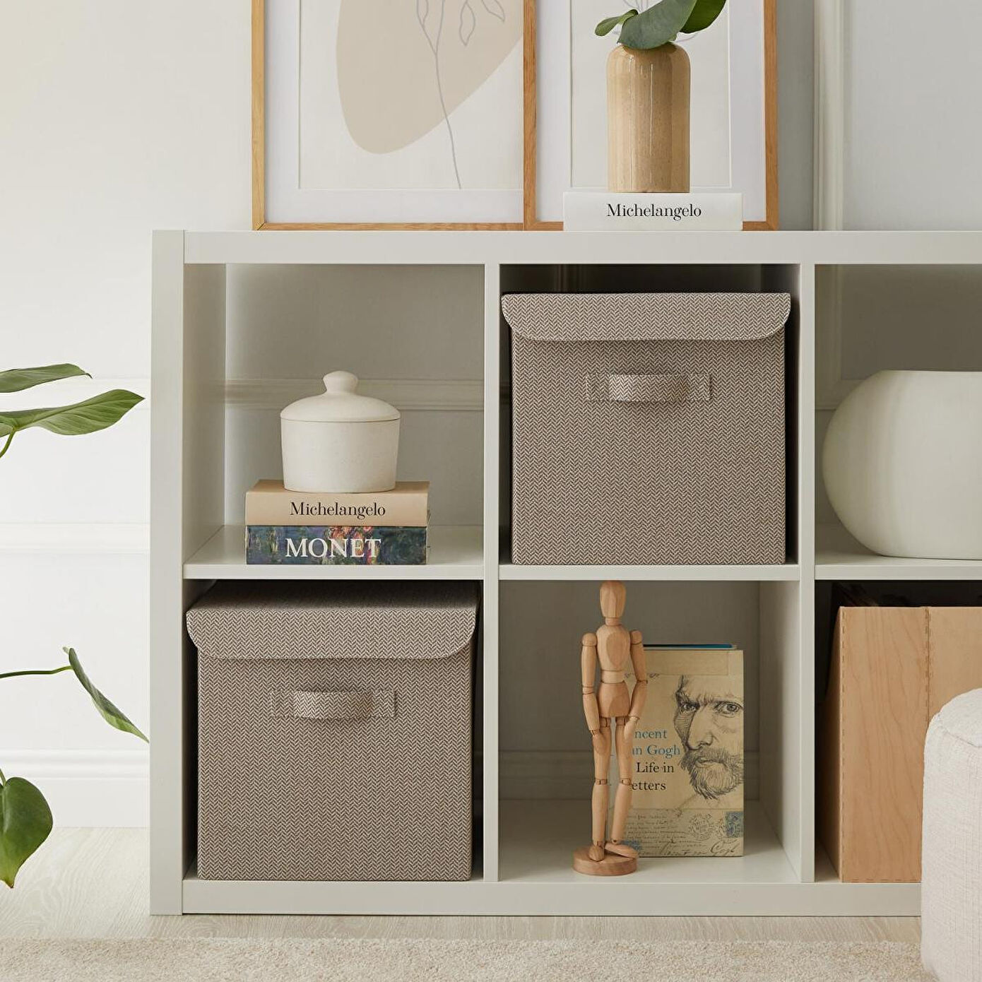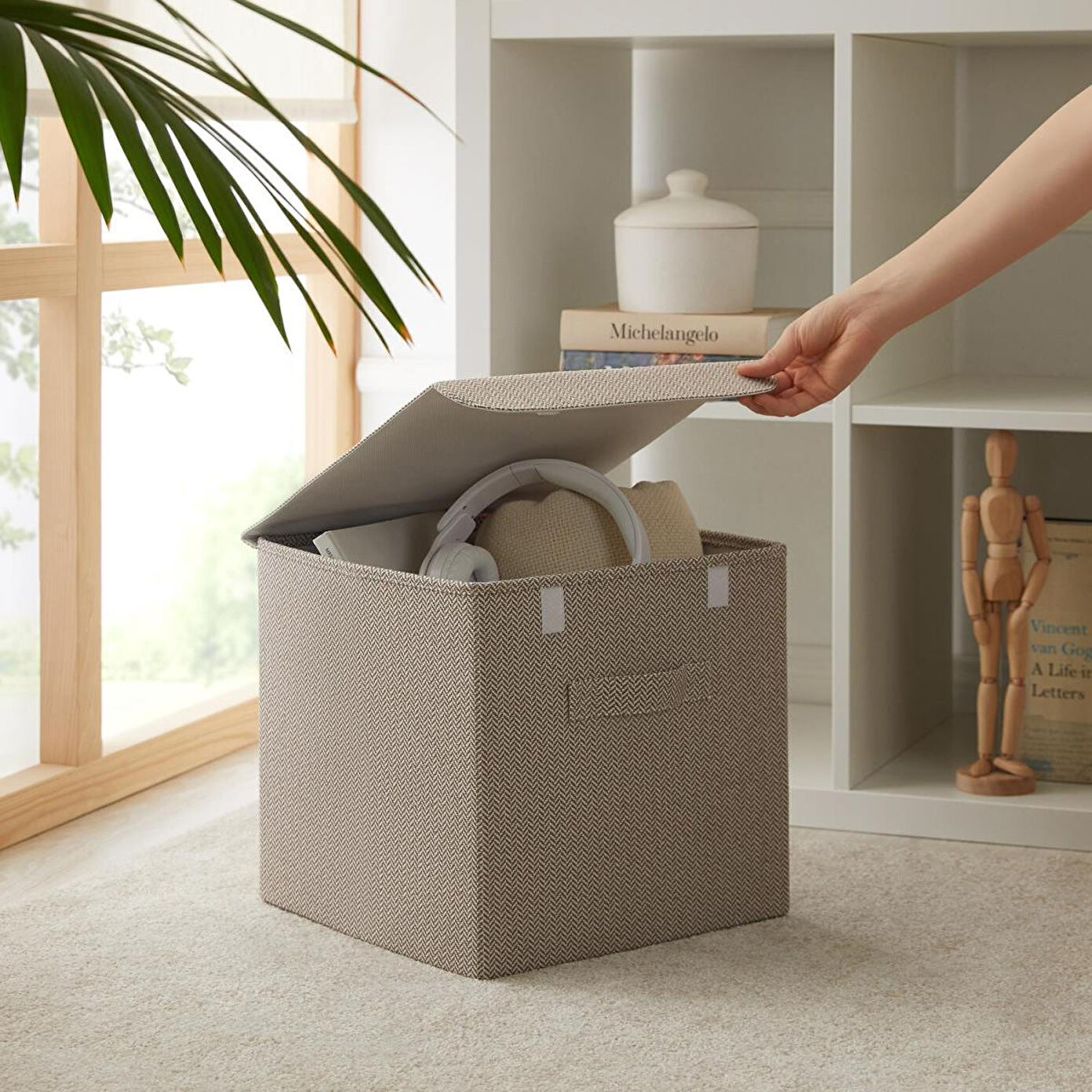 Ev ve ofiste, düzenli alan oluşturmanıza yardımcı olurken, aynı zamanda deri görünümlü kulp ve jüt kumaş yapısıyla bulunduğu ortama şıklık katar.
