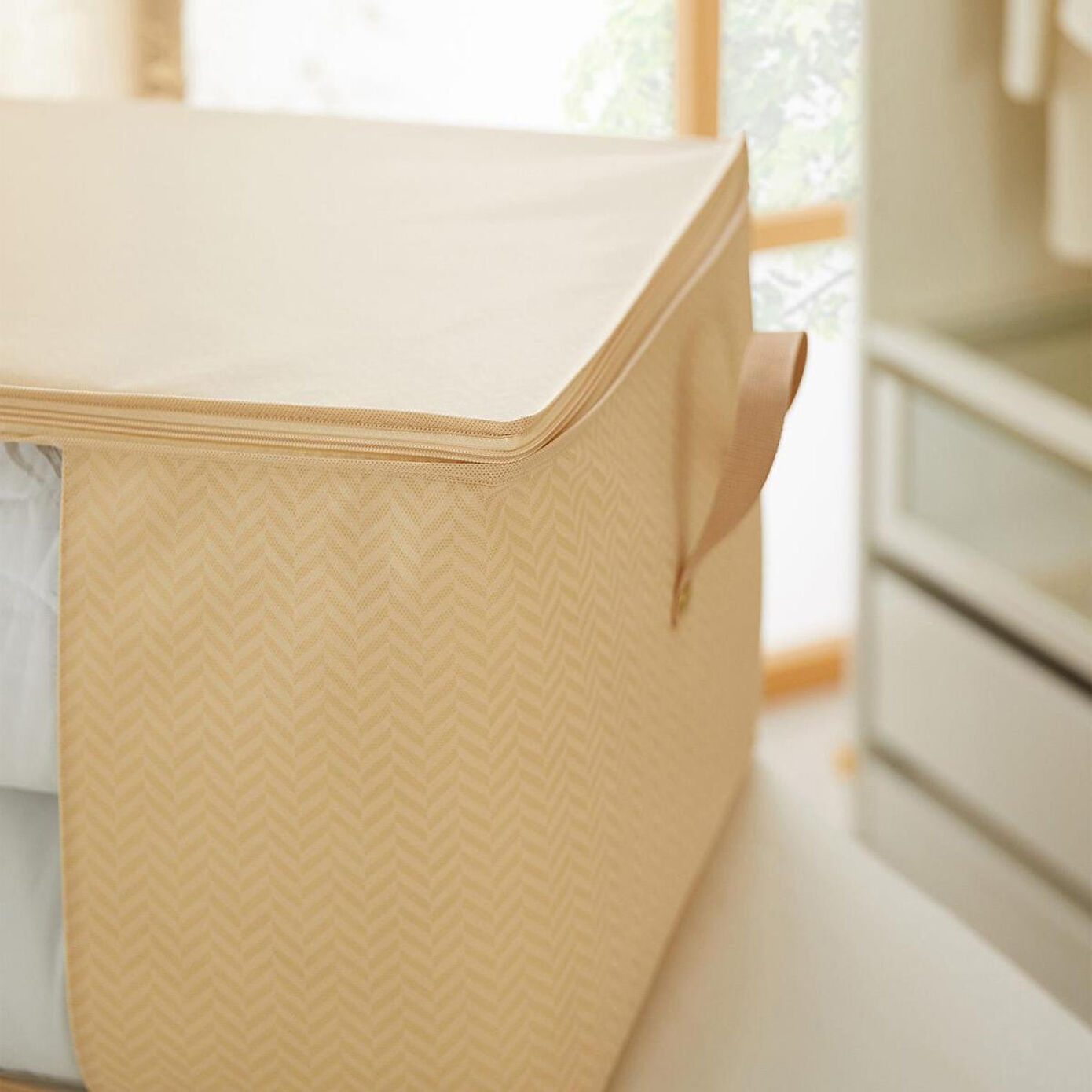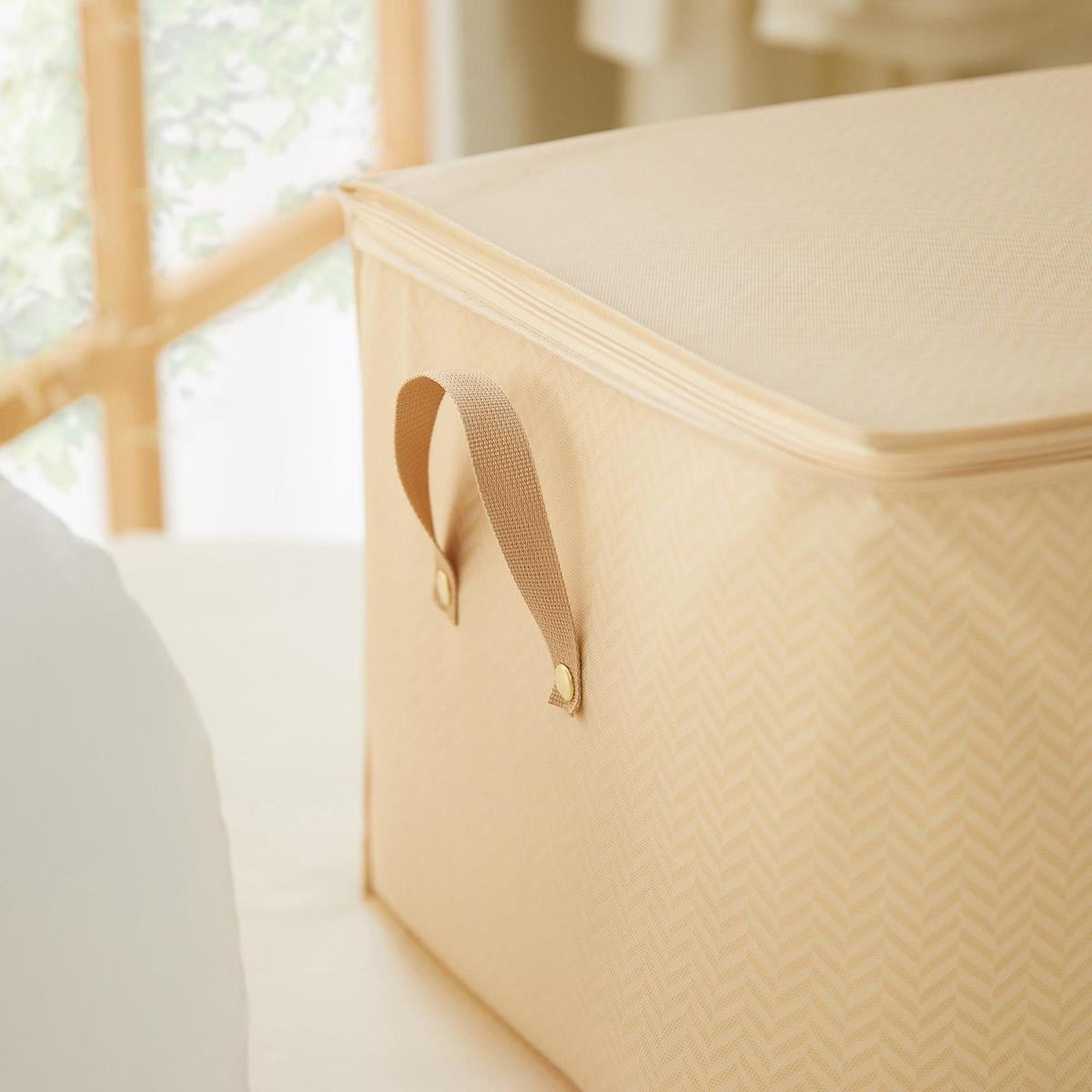Ocean Home Textile Büyük Boy Pvc Pencereli Bej Balıksırtı Hurç 60 X 43 X 35 Cm
