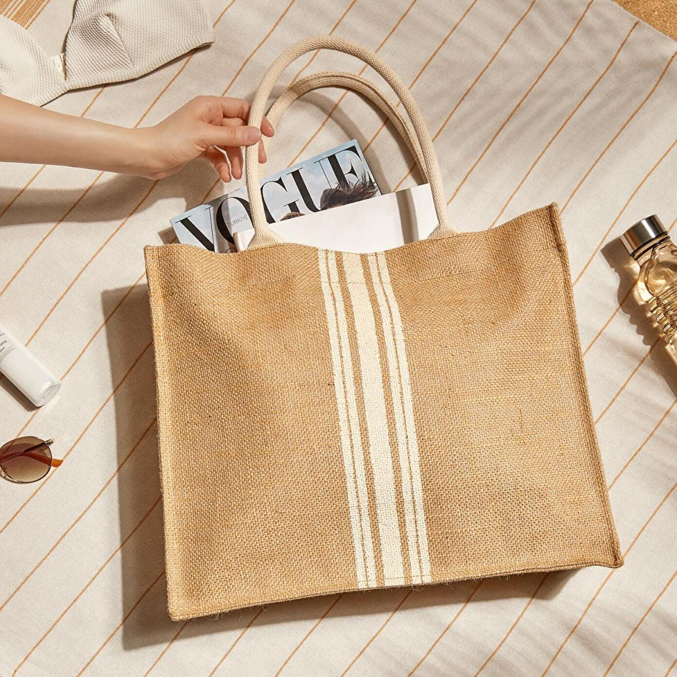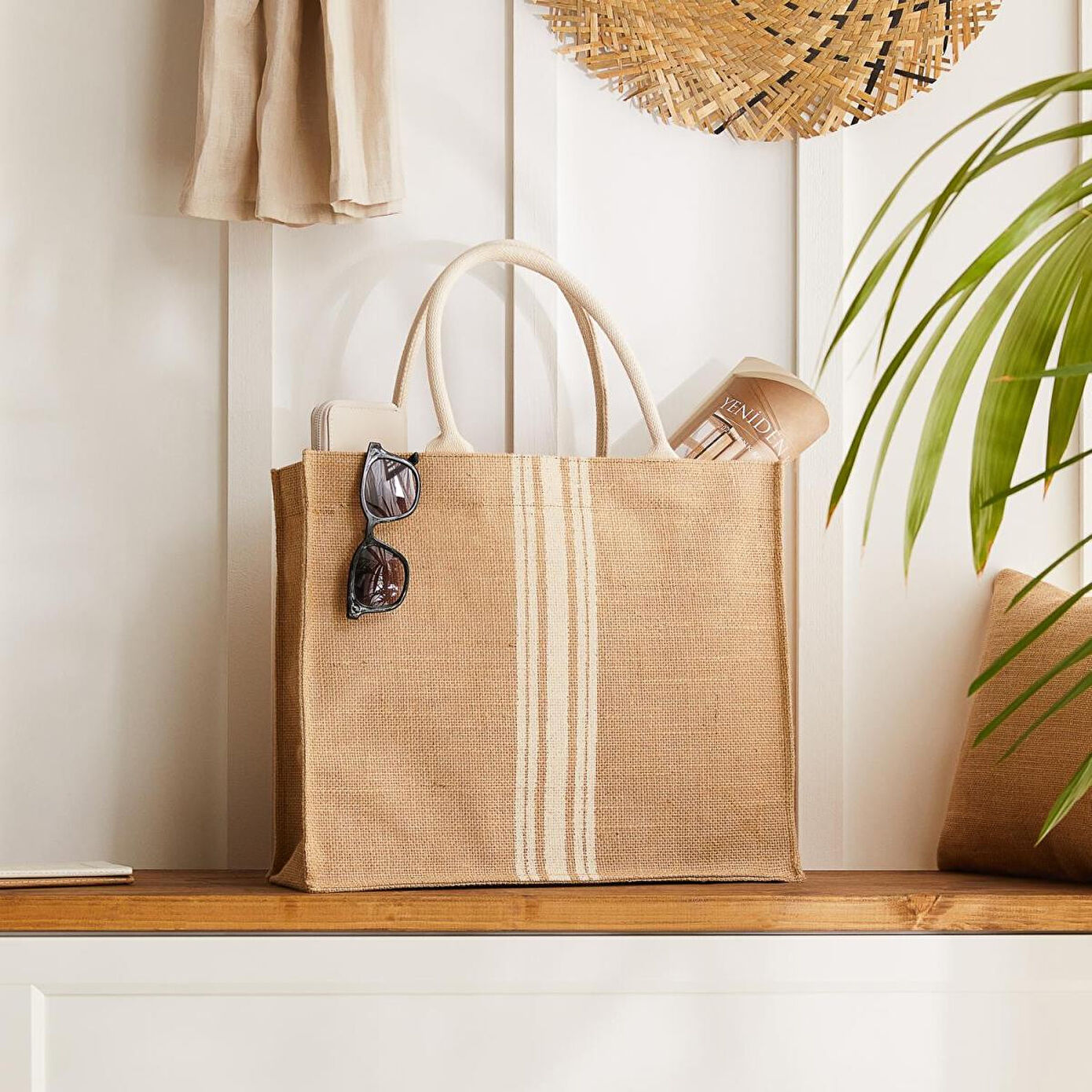 Ocean Home Textile Çizgili Jüt Çanta Özellikleri