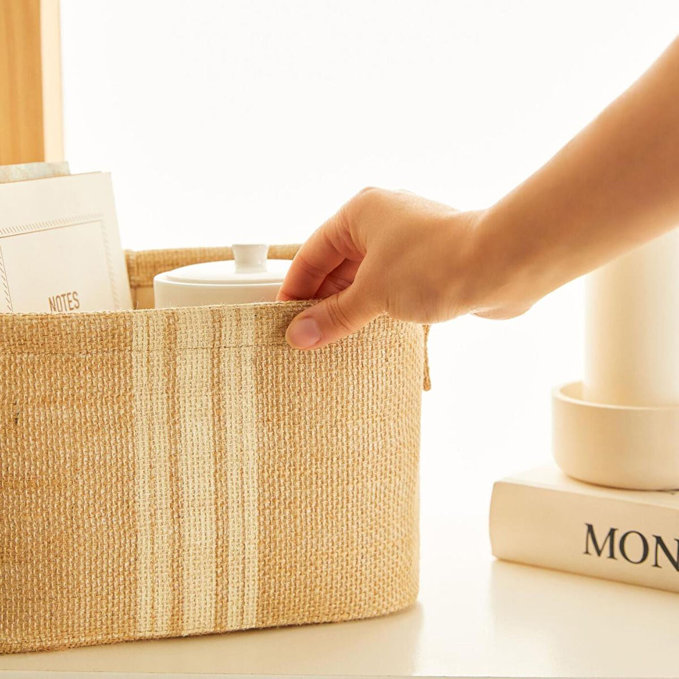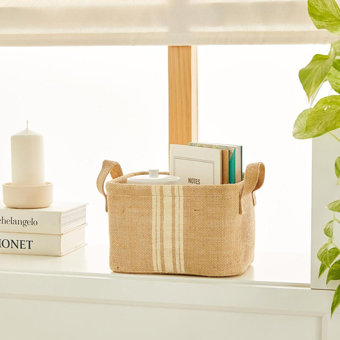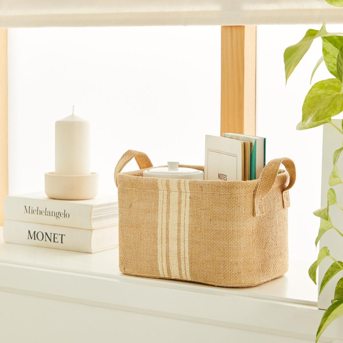 Jüt dikdörtgen sepet düzenli alan oluşturmanıza yardımcı olurken, aynı zamanda bulunduğu ortama şıklık katar.