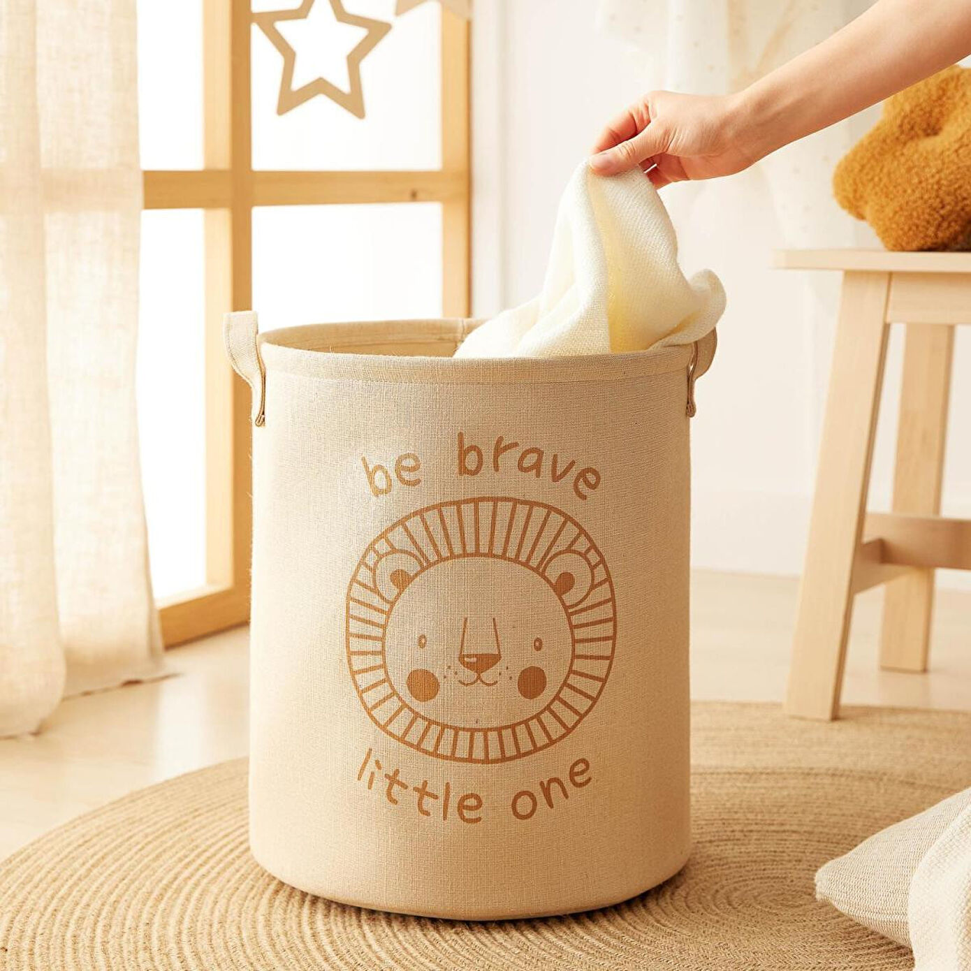 Pozitif mesajlı baskılarıyla ve doğal ipliklerden bir araya gelen kumaşlardan üretilen diğer sepet ve kutuları, çocuk odanızı tamamlamak ve bir bütünlük sağlamak için tercih edebilirsiniz.