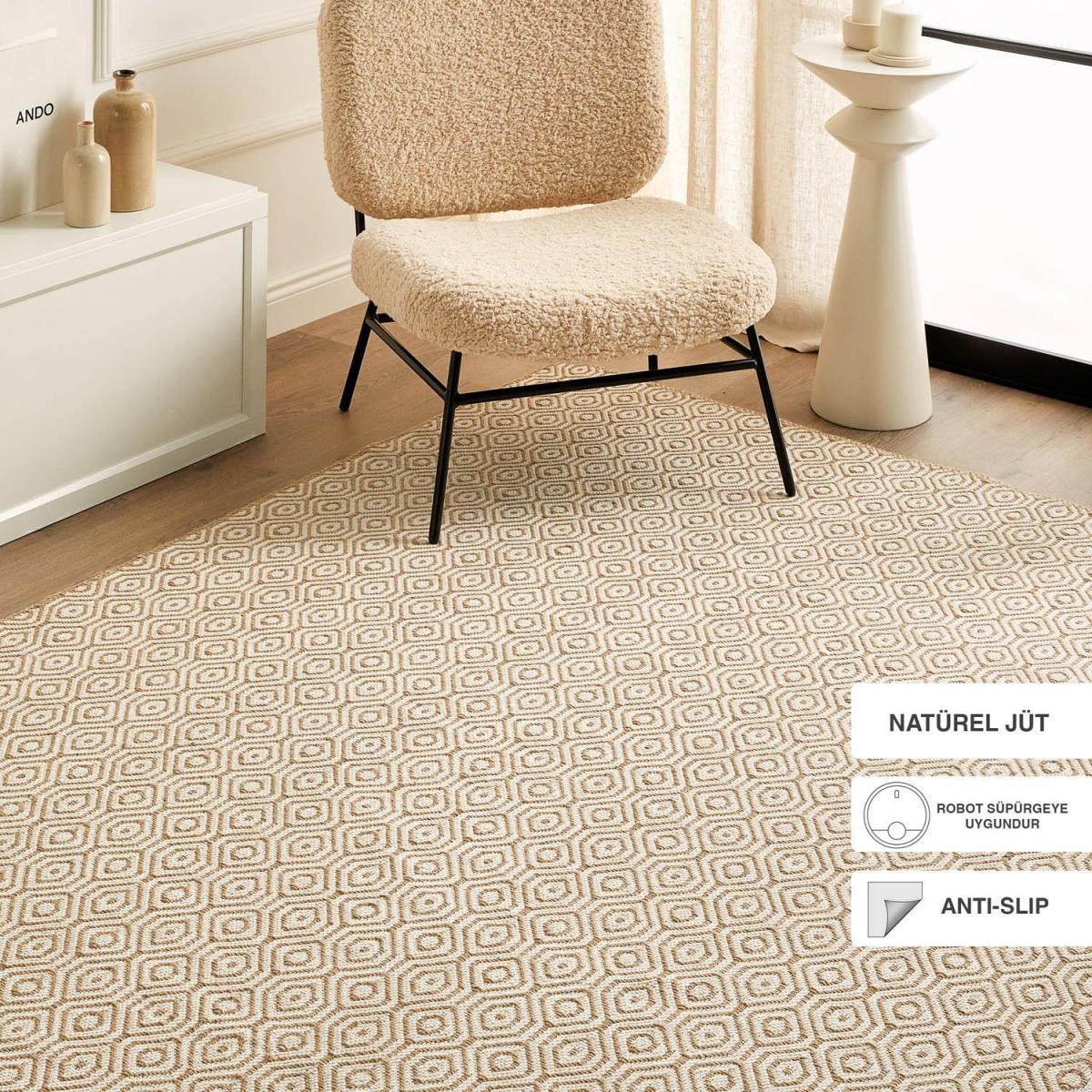 Ocean Home Textile Ekru Renk Karo Jüt Halı Kilim Özellikleri