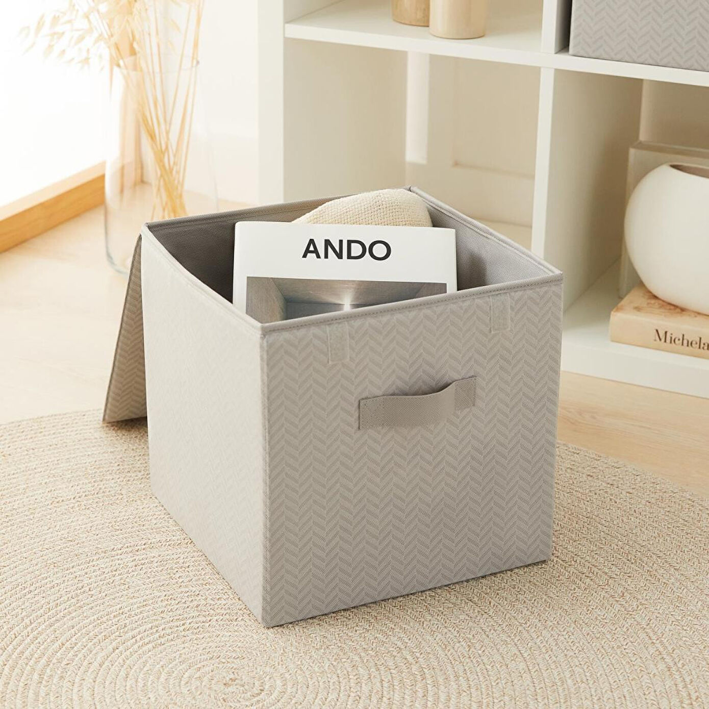 Ocean Home Textile Gri Balıksırtı Kapaklı Kutu 30 X 30 X 30 Cm