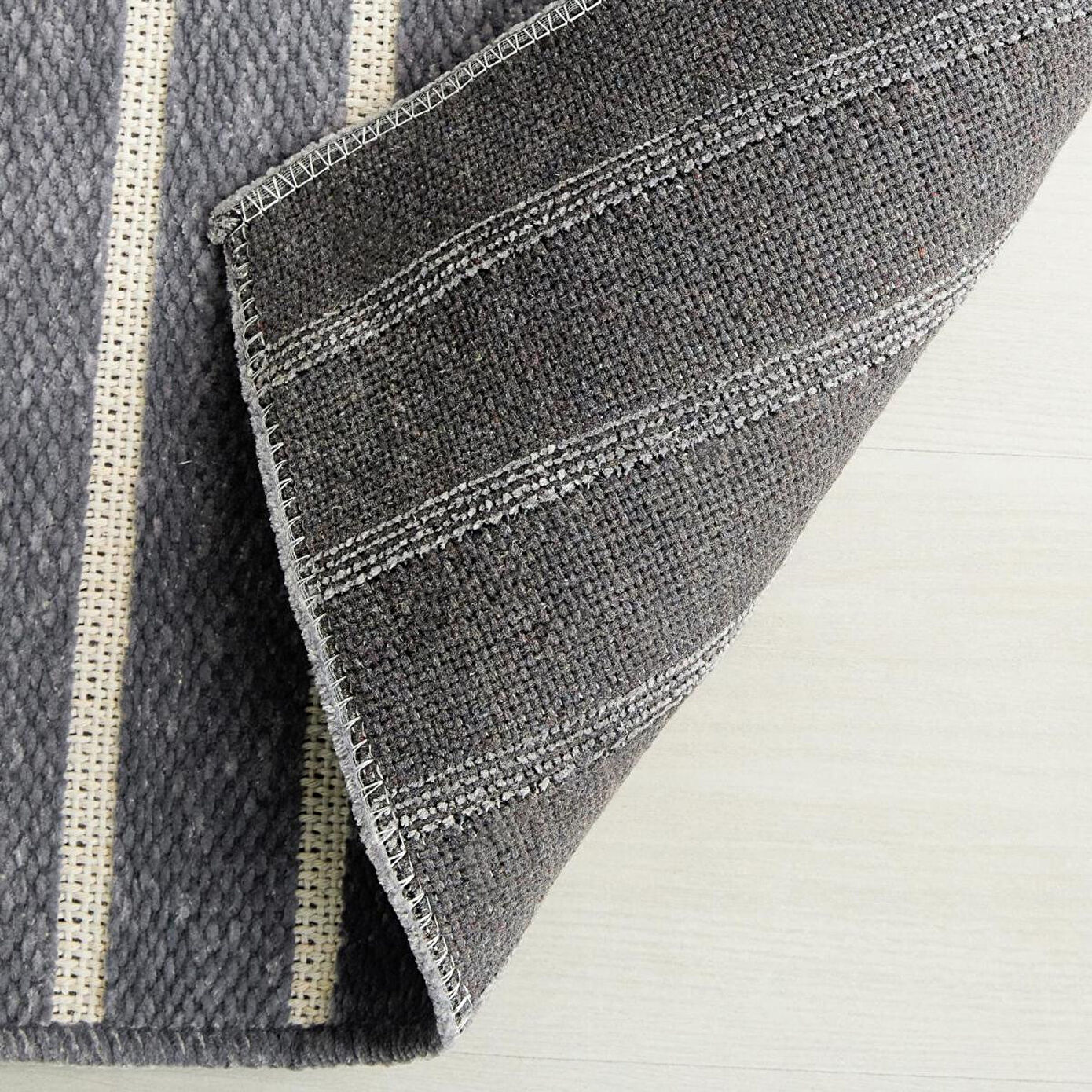 Ocean Home Textile Gri Renk Çizgi Desenli Şönil Halı Kilim 160 X 230 Cm