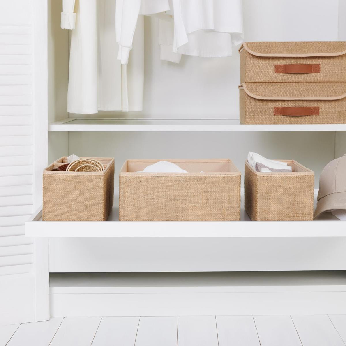 Jüt kumaş organizer set, katlanabilir olması sayesinde kullanılmadığı zamanlarda yer kaplamaz.