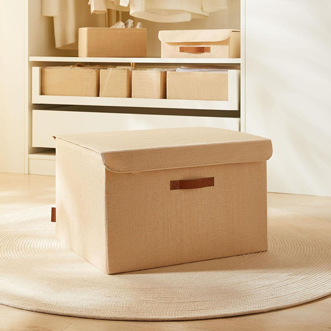 Ev ve ofiste, düzenli alan oluşturmanıza yardımcı olurken, aynı zamanda deri görünümlü kulp ve jüt kumaş yapısıyla bulunduğu ortama şıklık katar. Modern görünümüyle dekoratif olmasının yanı sıra, giysilerden çoraplara, ev tekstili ürünlerinden oyuncaklara, makyaj malzemelerinden ofis kırtasiye ürünlerine kadar geniş yelpazede ürünleri saklayabilmek için kullanılabilir .