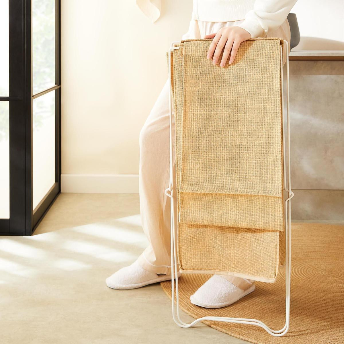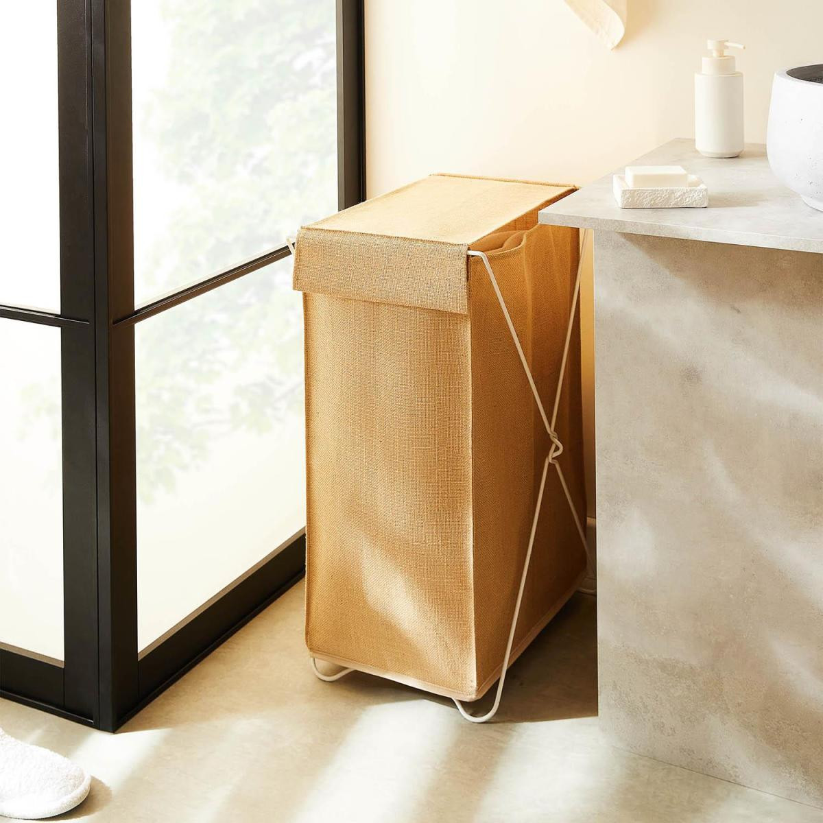 Ocean Home Textile Katlanabilir Bölmeli Beyaz Metal Destekli Naturel Jüt Çamaşır Sepeti 44 X 29.5 X 63 Cm