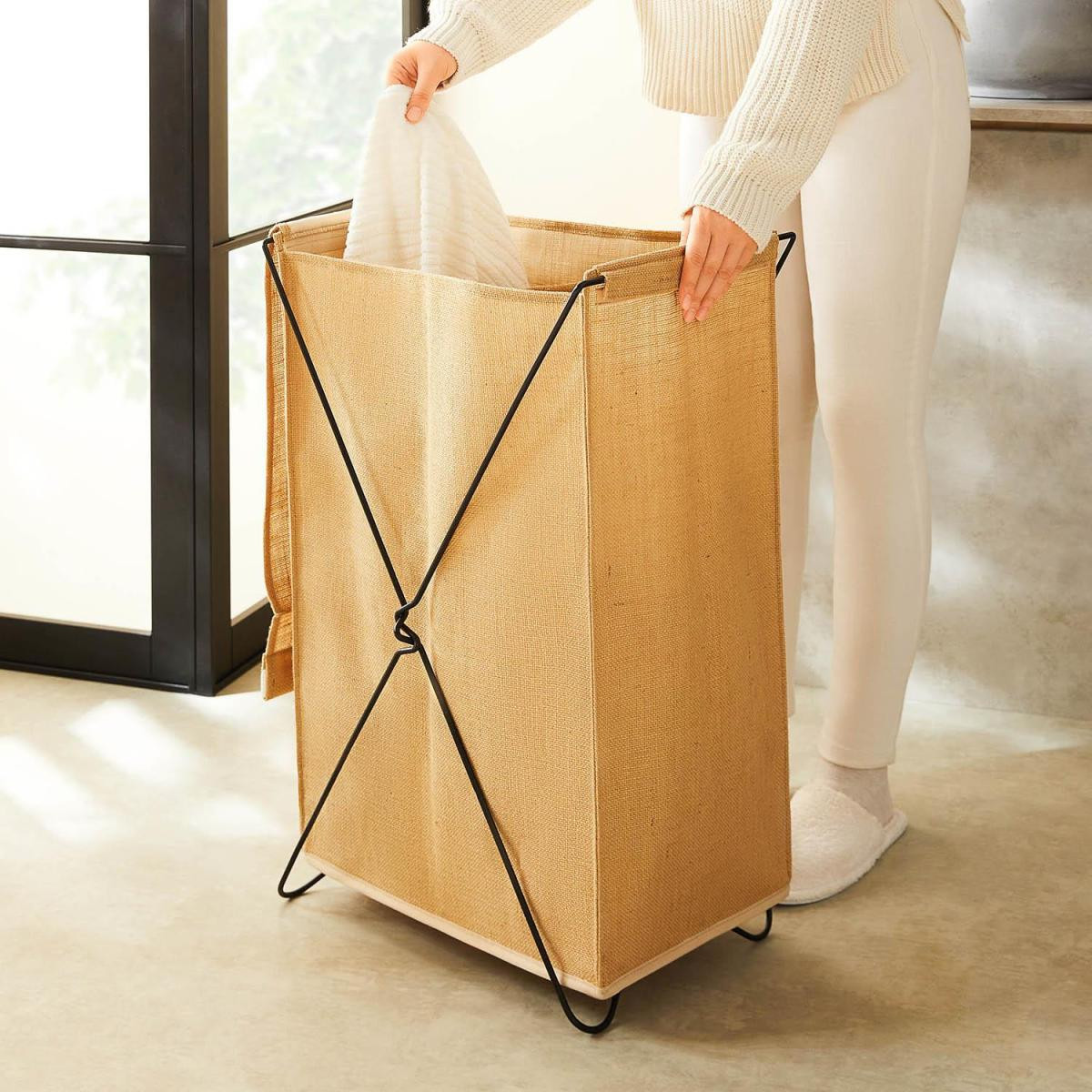 Ocean Home Textile Katlanabilir Bölmeli Siyah Metal Destekli Naturel Jüt Çamaşır Sepeti Özellikleri