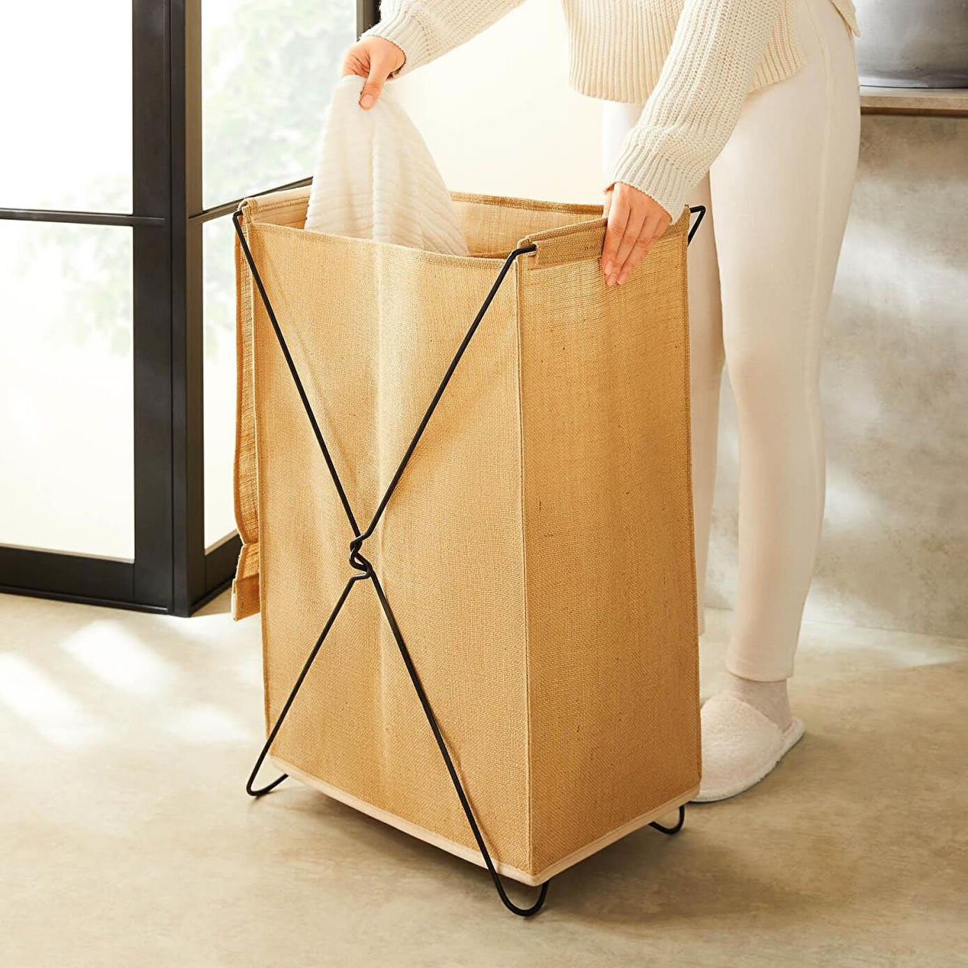Ocean Home Textile Katlanabilir Bölmeli Siyah Metal Destekli Naturel Jüt Çamaşır Sepeti 44 X 29.5 X 63 Cm